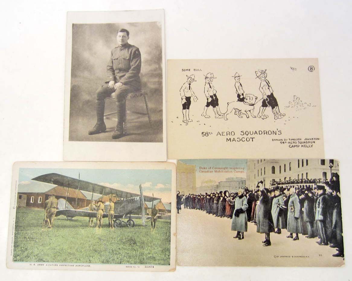 1 RPPC Real Photo Postcard of a Soldier, 1 Airplane, 1 58th Aero Squadrons Mascot & Duke inspecting Canadian Mobilization Camps