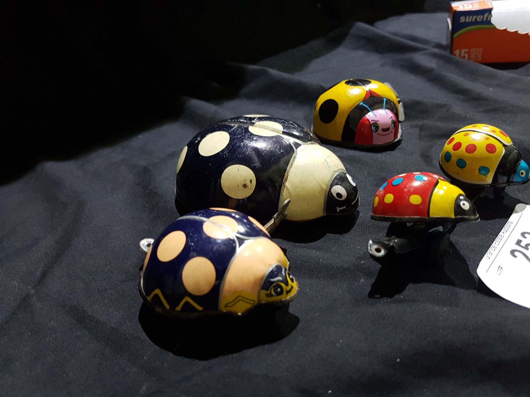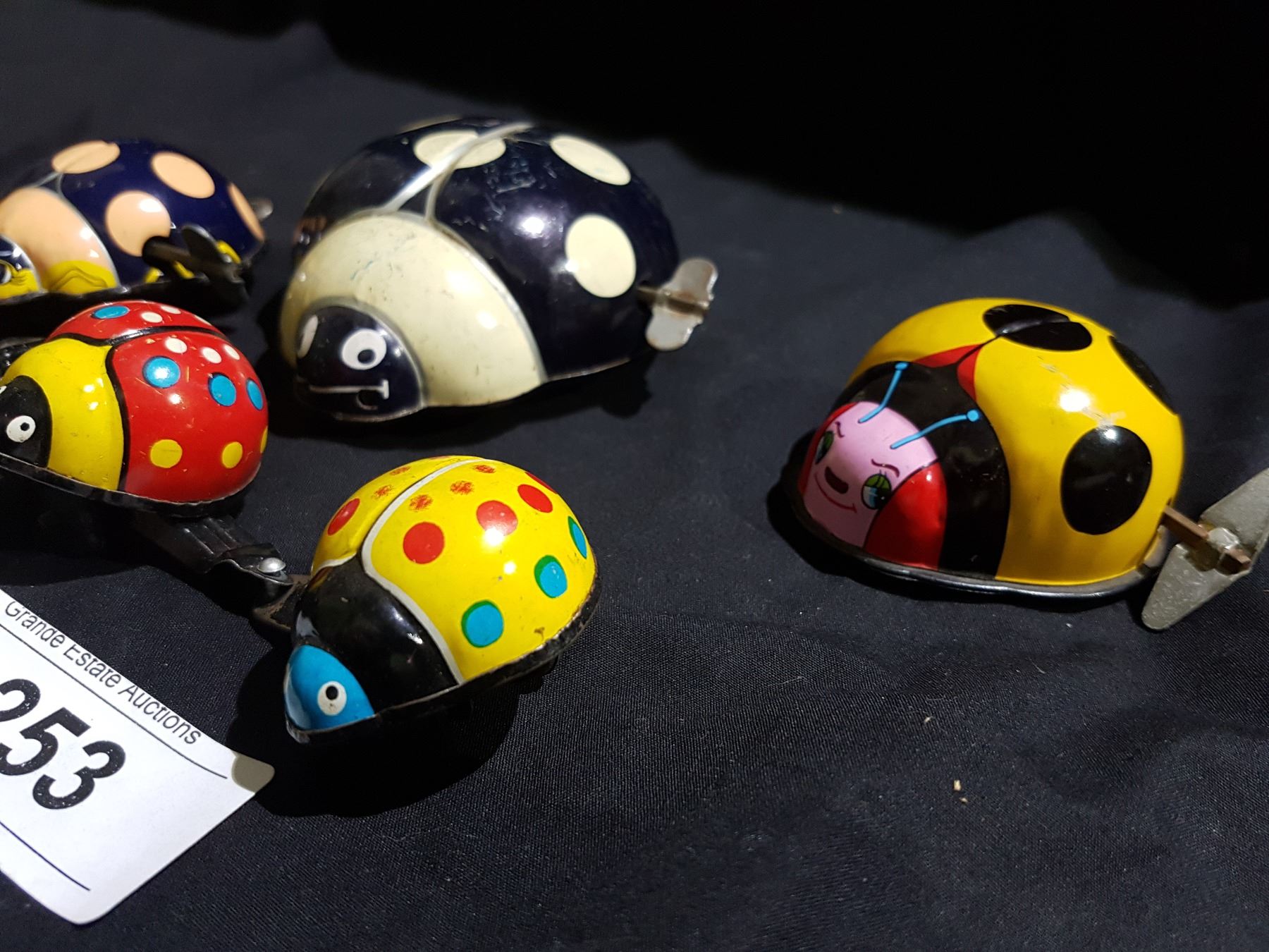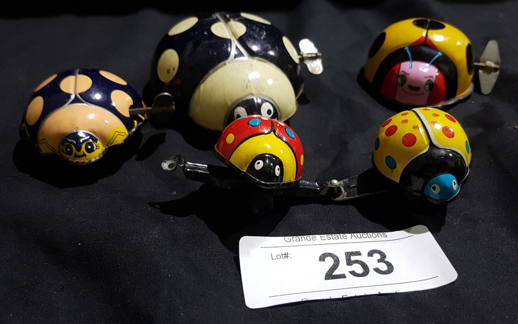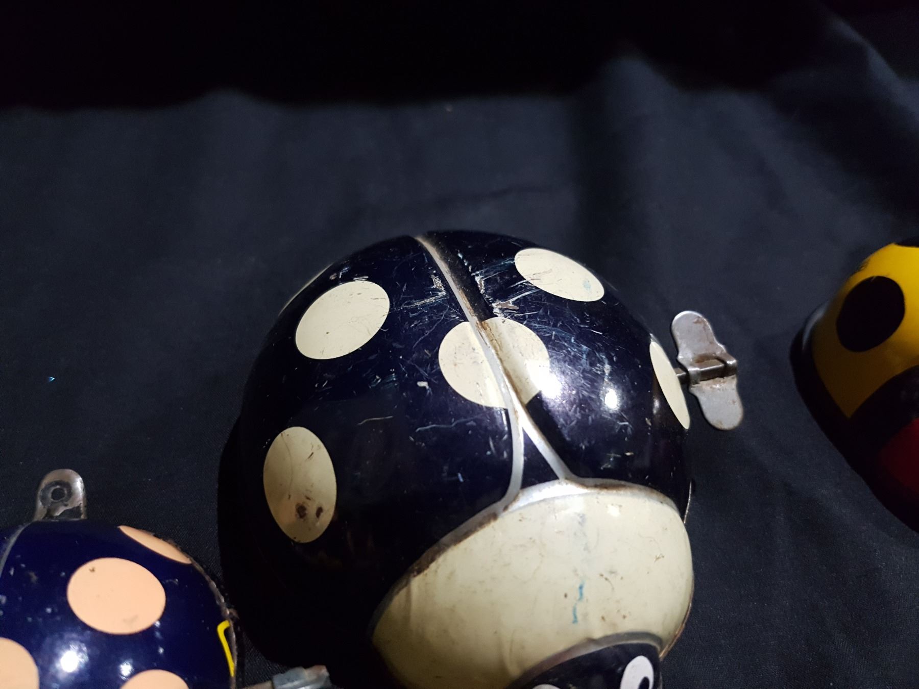 LOT OF 4 VINTAGE WIND UP JAPAN TIN LADYBUGS