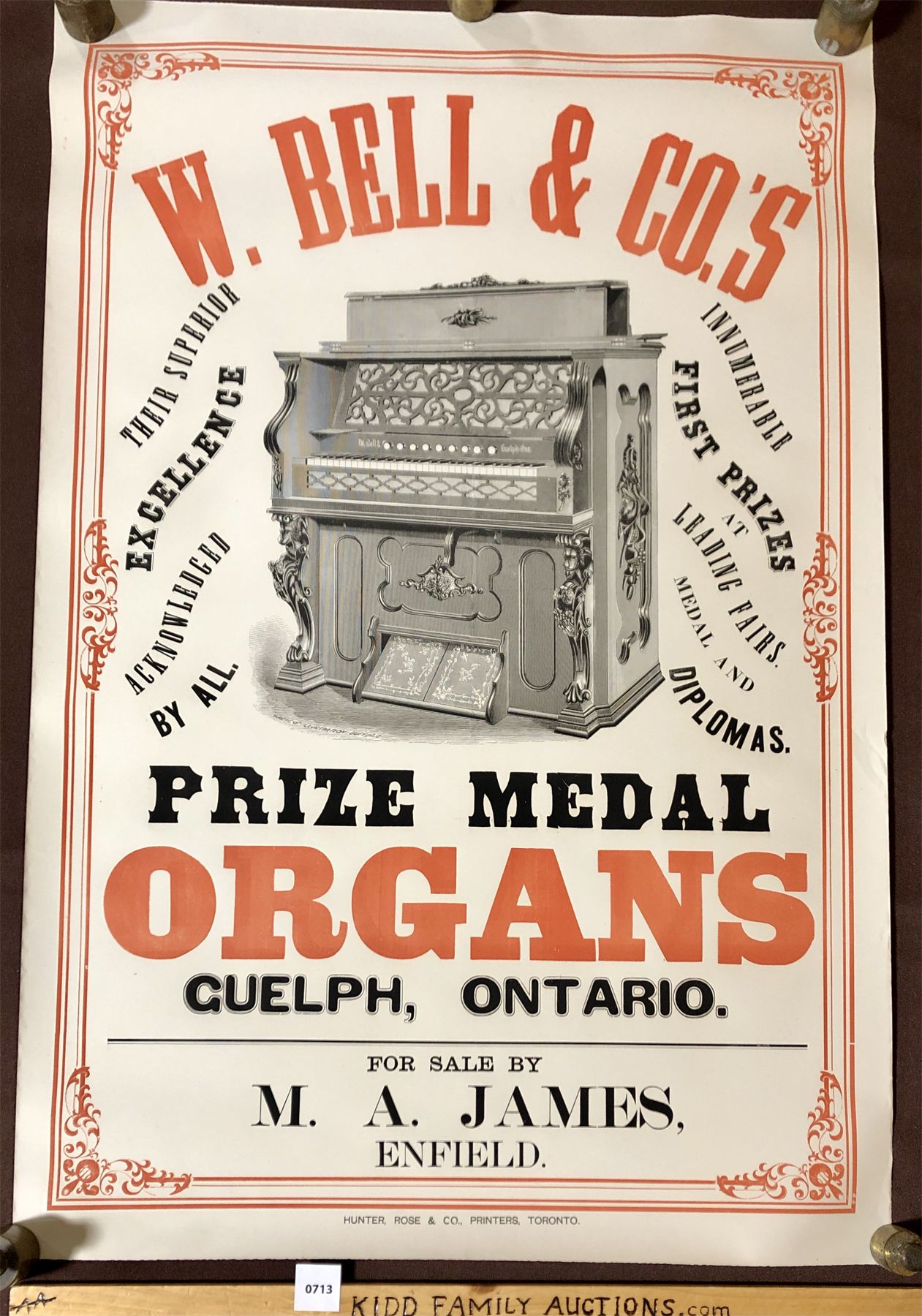LOT OF 4 - W. BELL AND CO - PRIZE MEDAL ORGAN ADVERTISING POSTERS - 20IN X 30IN