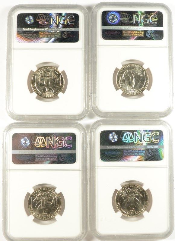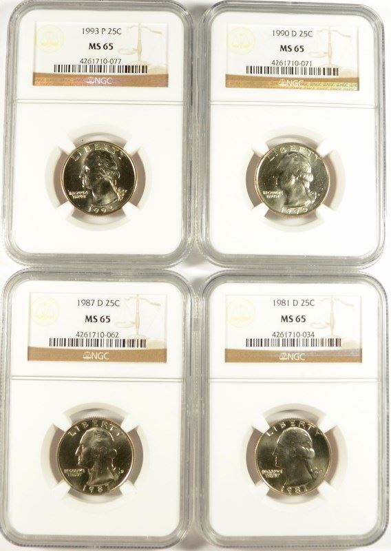 LOT OF ( 4 ) WASHINGTON QUARTERS, NGC GRADED MS-65: 1981-D, 87-D, 90-D & 93-P