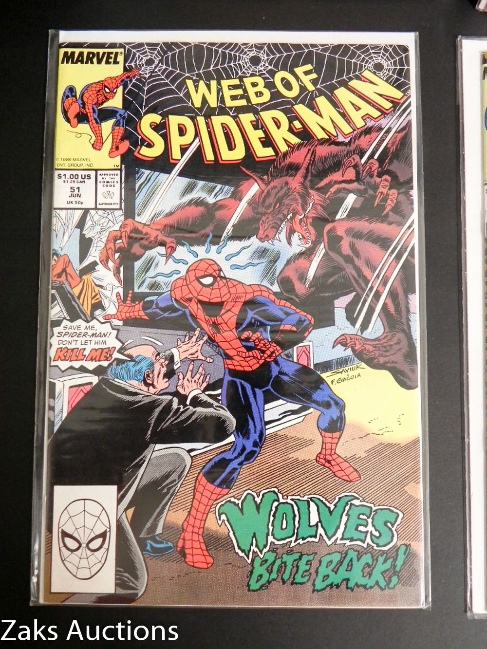 LOT OF 4 WEB OF SPIDER-MAN COMIC BOOKS. NO'S 119, 54, 50, 51