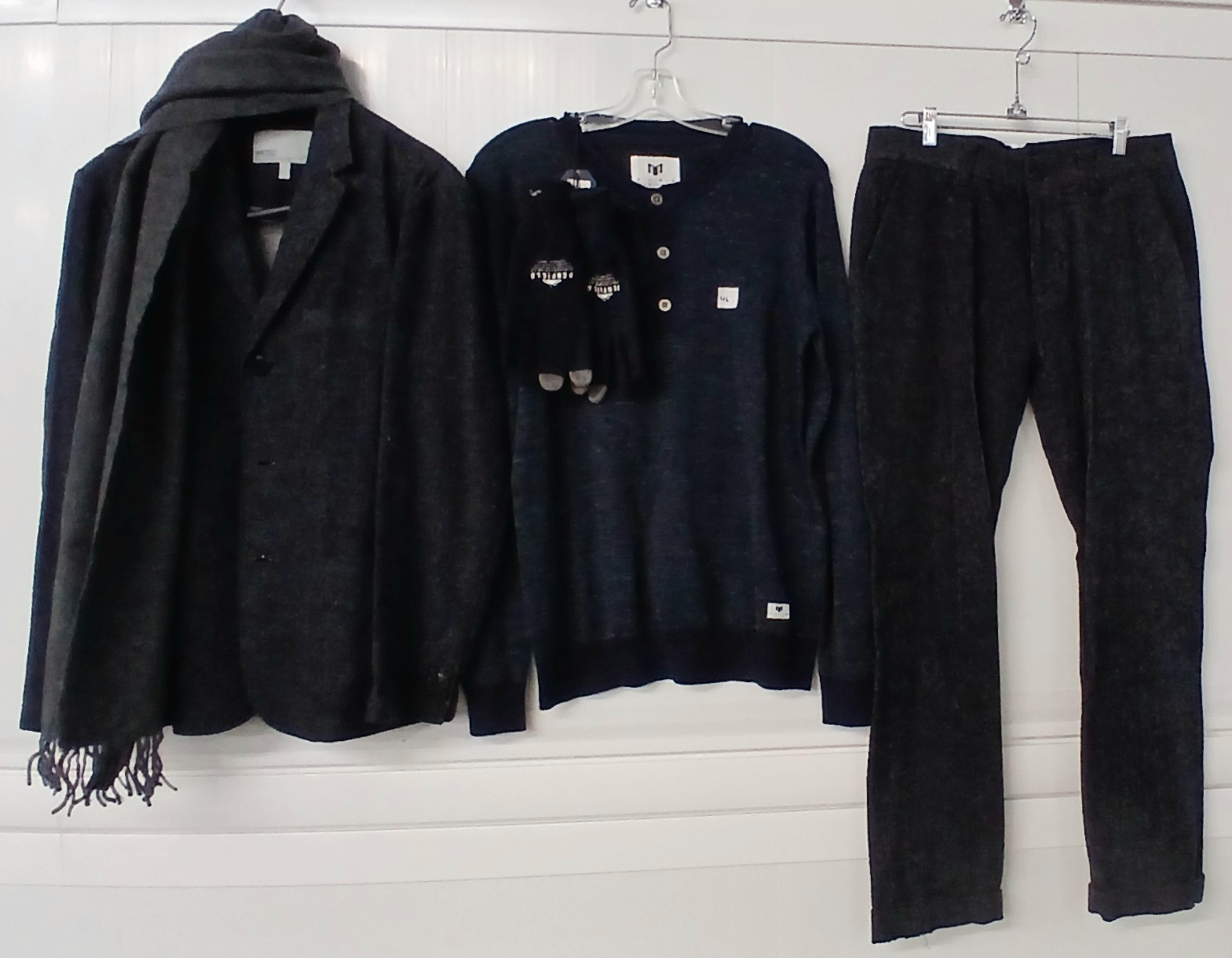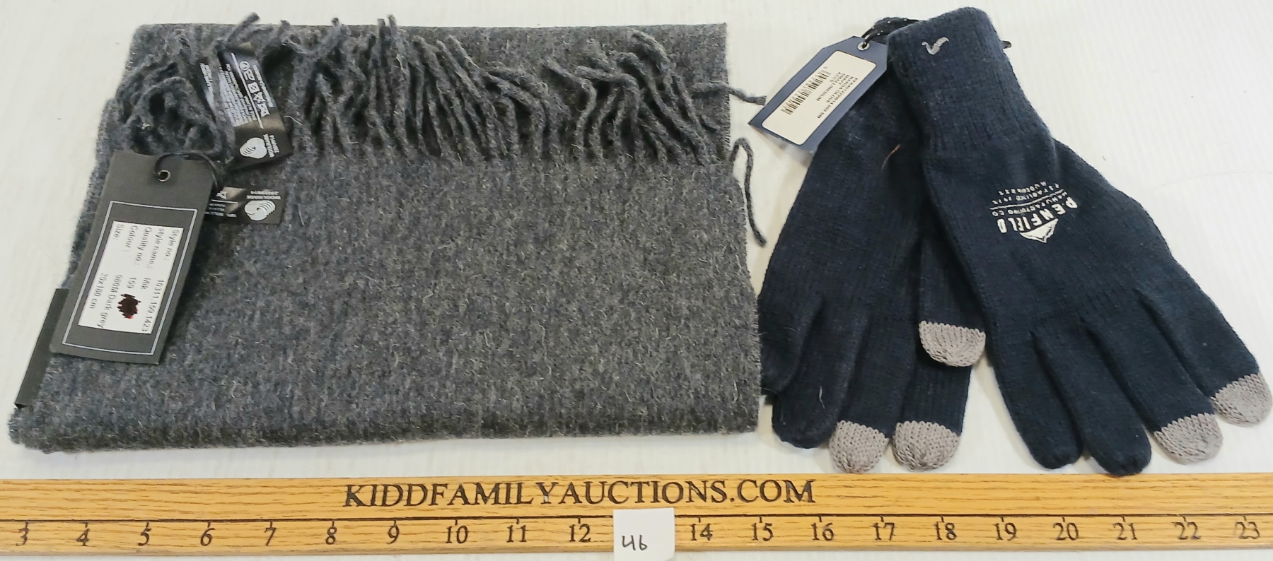 NOTE: MEDIUM SIZE JACKET, TROUSERS & SHIRT - PENFIELD MFG GLOVES - LAURITZ KNIT COTTON SHIRT - 11 X 70IN SCARF - SMALL/MEDIUM NANGA GLOVES