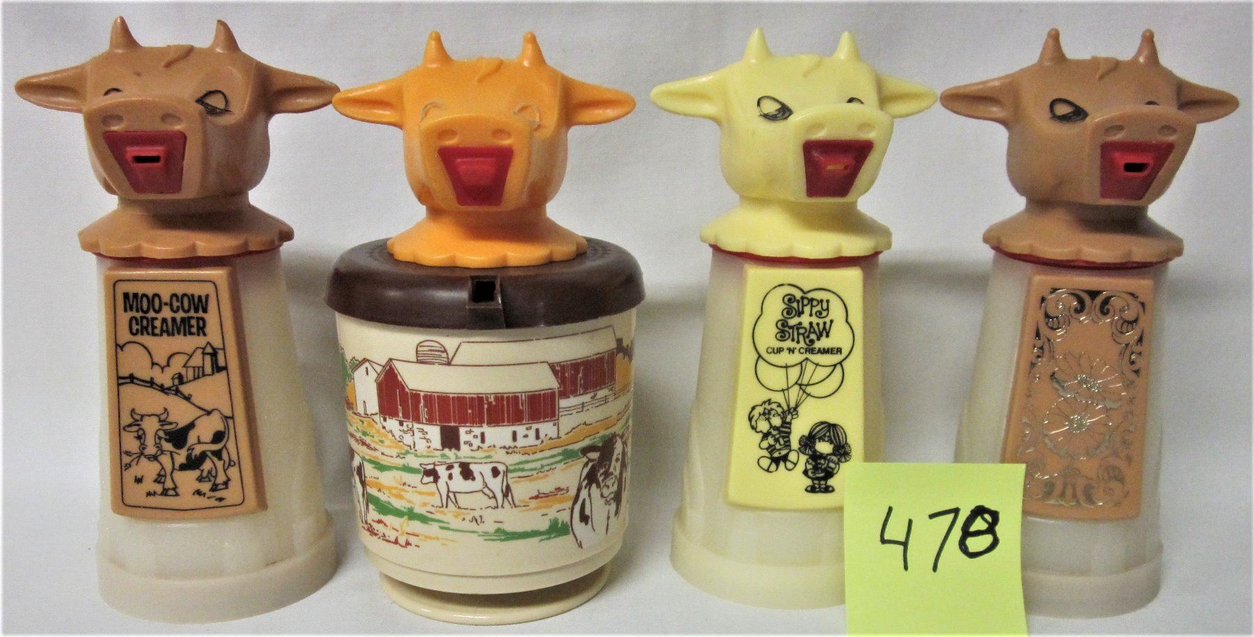 LOT OF 4 WHIRLEY MOO-COW CREAMERS (PLASTIC)