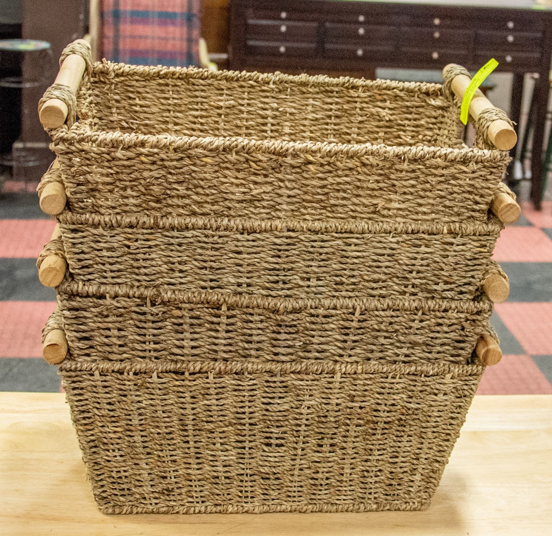 LOT OF 4 WICKER BASKETS APPROX 9" X 15"