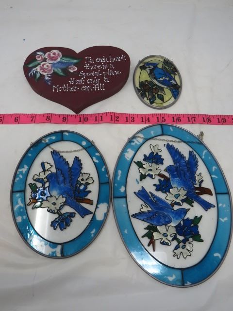 LOT OF 4 WINDOW DECORATIONS (3 X STAINED GLASS) *1 X HEART*
