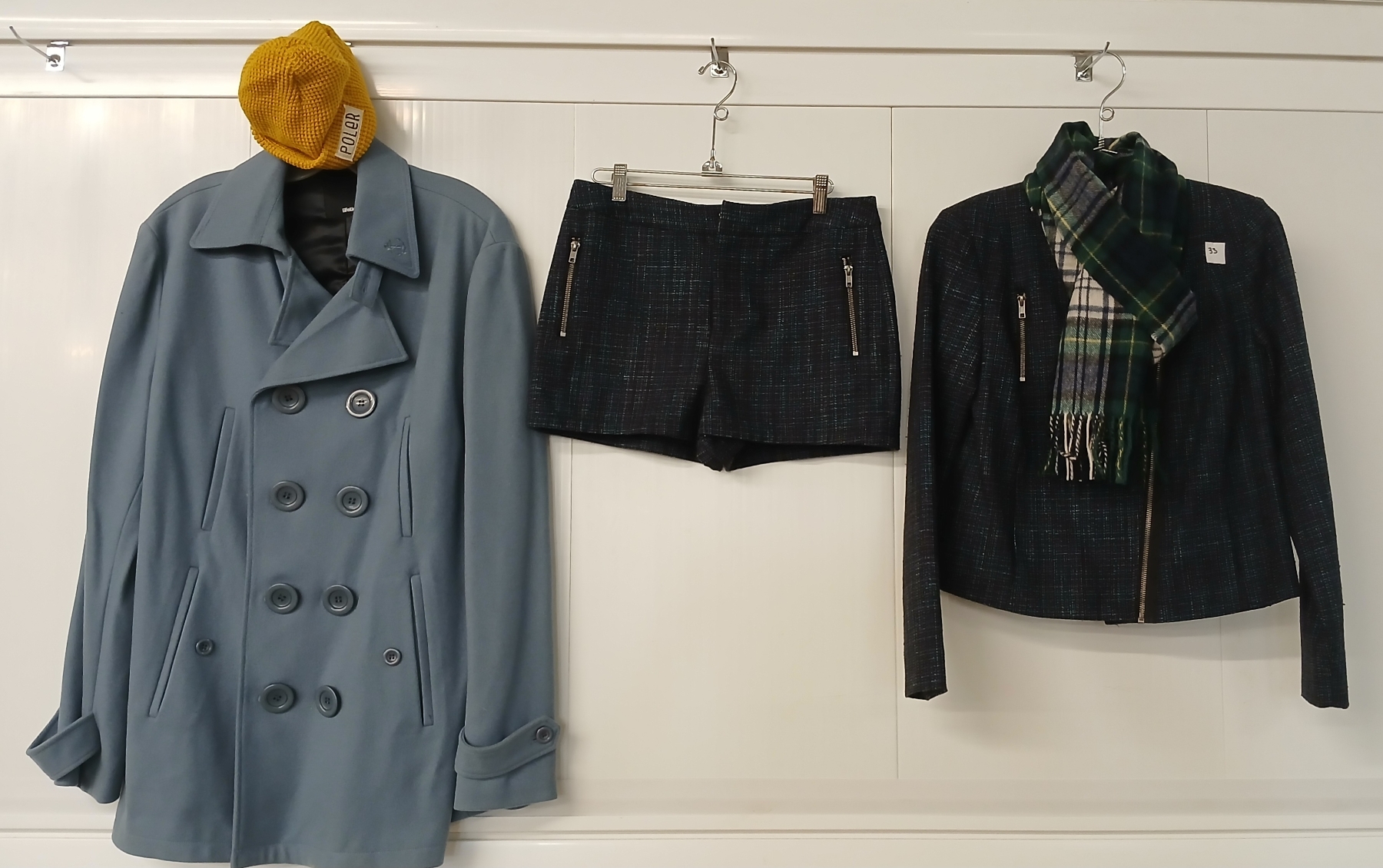 NOTE: BLAZER & SHORTS MARKED SIZE 36 (APPROX MED) - LIFETIME MED COAT - POLER SMALL HAT - MINIMUM SCARF