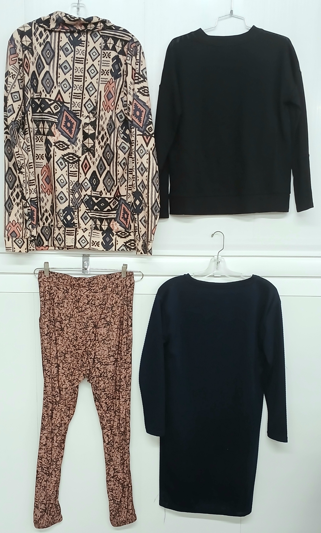 LOT OF 4 - WOMEN'S SHIRT, LEGGINGS, DRESS & JACKET - MFG MINIMUM & ALL-DAY