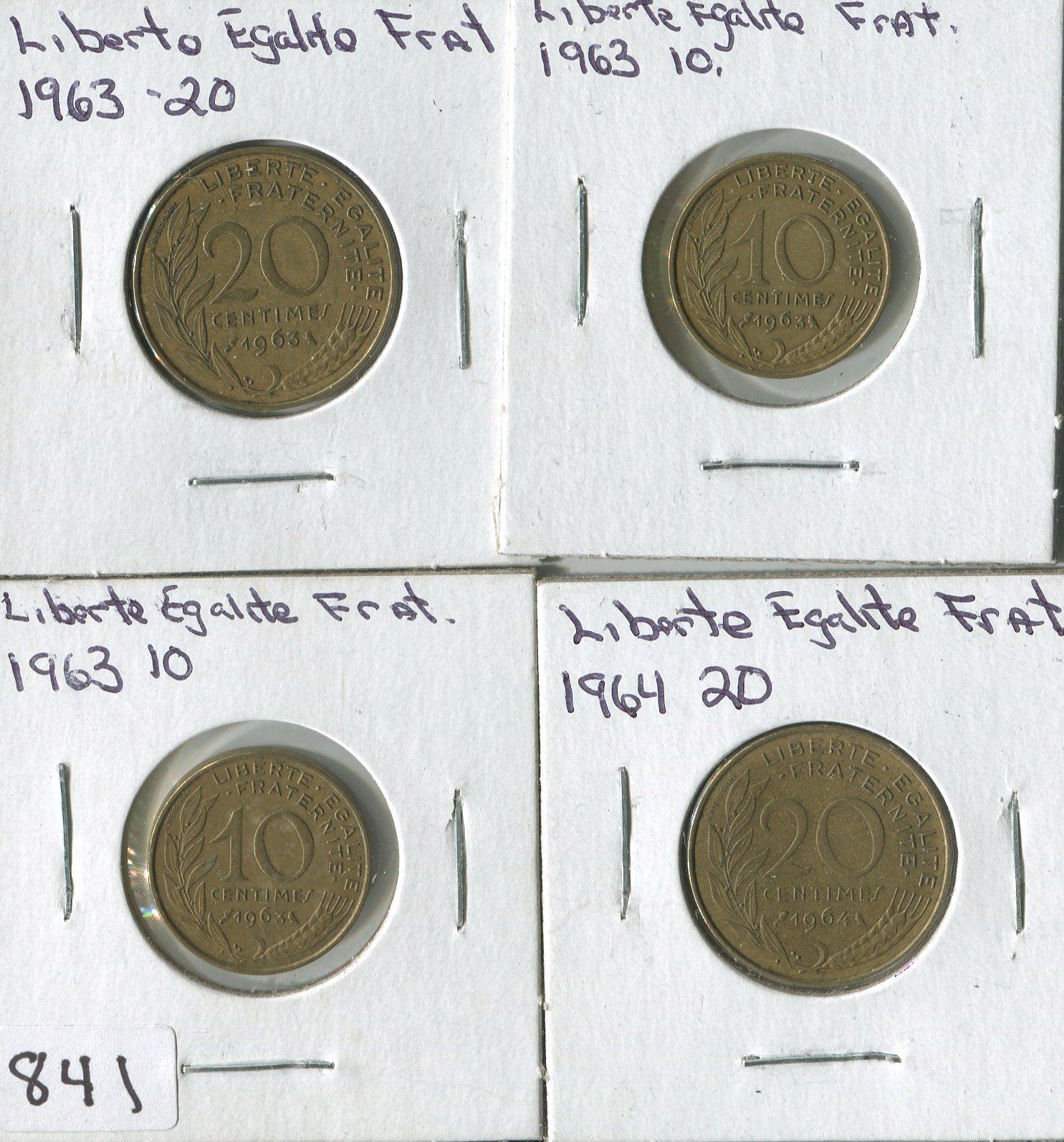 LOT OF 4 WORLD COINS (LIBERTE EGALITE FRAT) *1963-64*