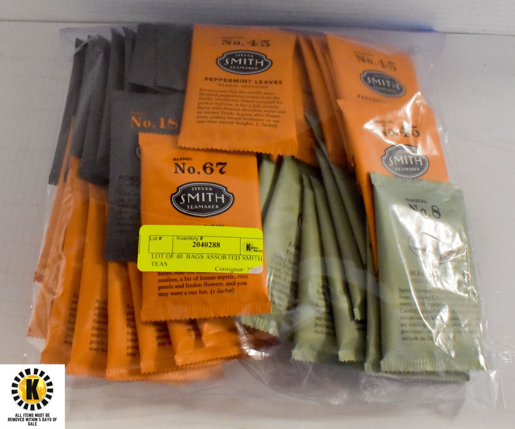 LOT OF 40 BAGS ASSORTED SMITH TEAS