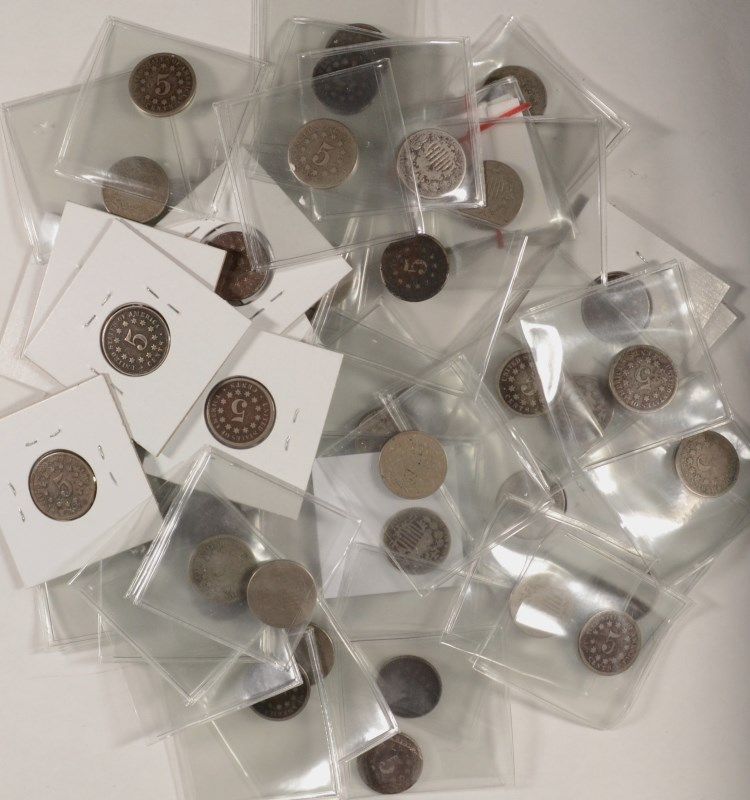 LOT OF (44) SHIELD NICKELS, MOSTLY LOWER GRADES