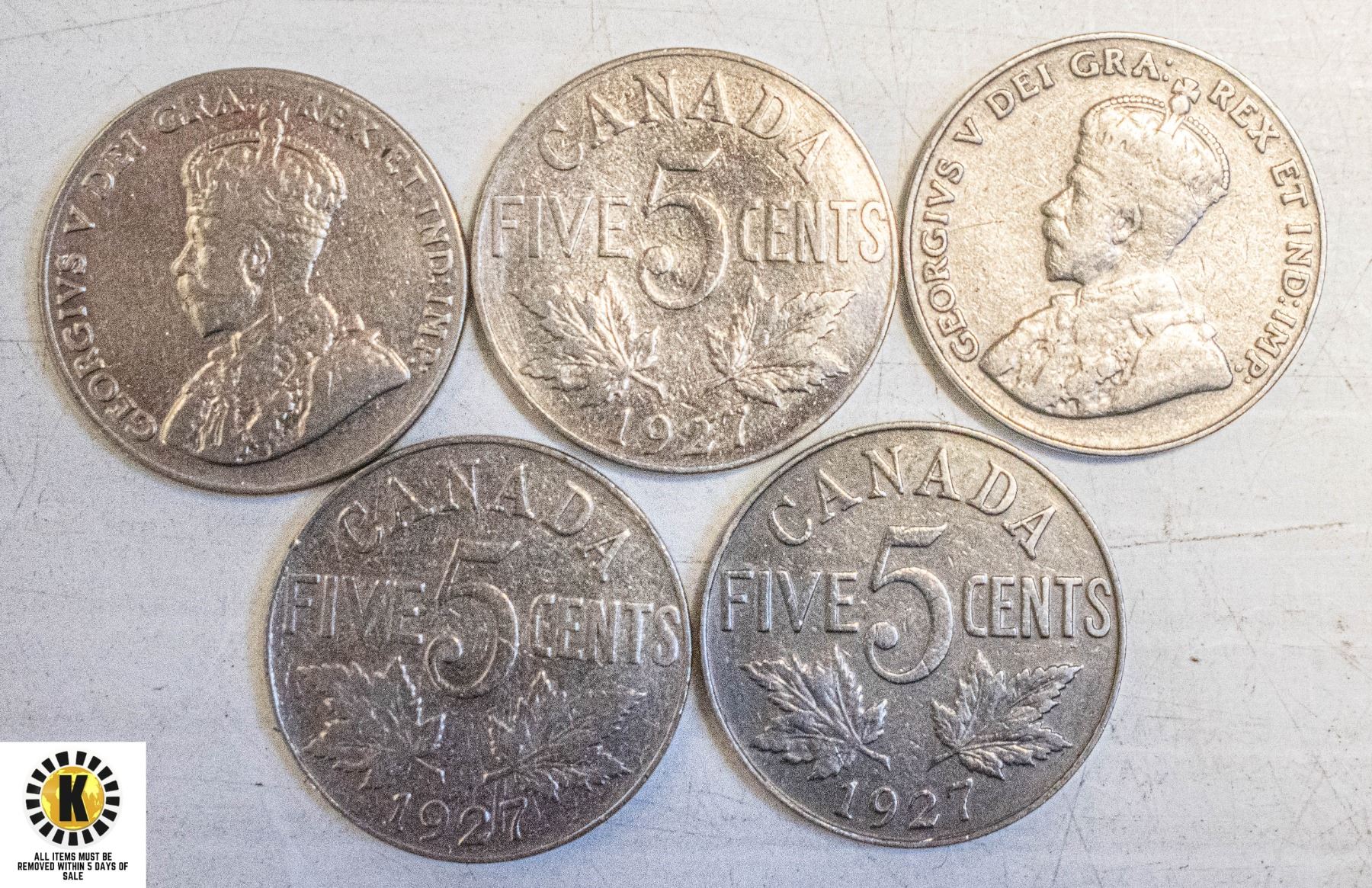 LOT OF 5 1927 CANADIAN NICKLES