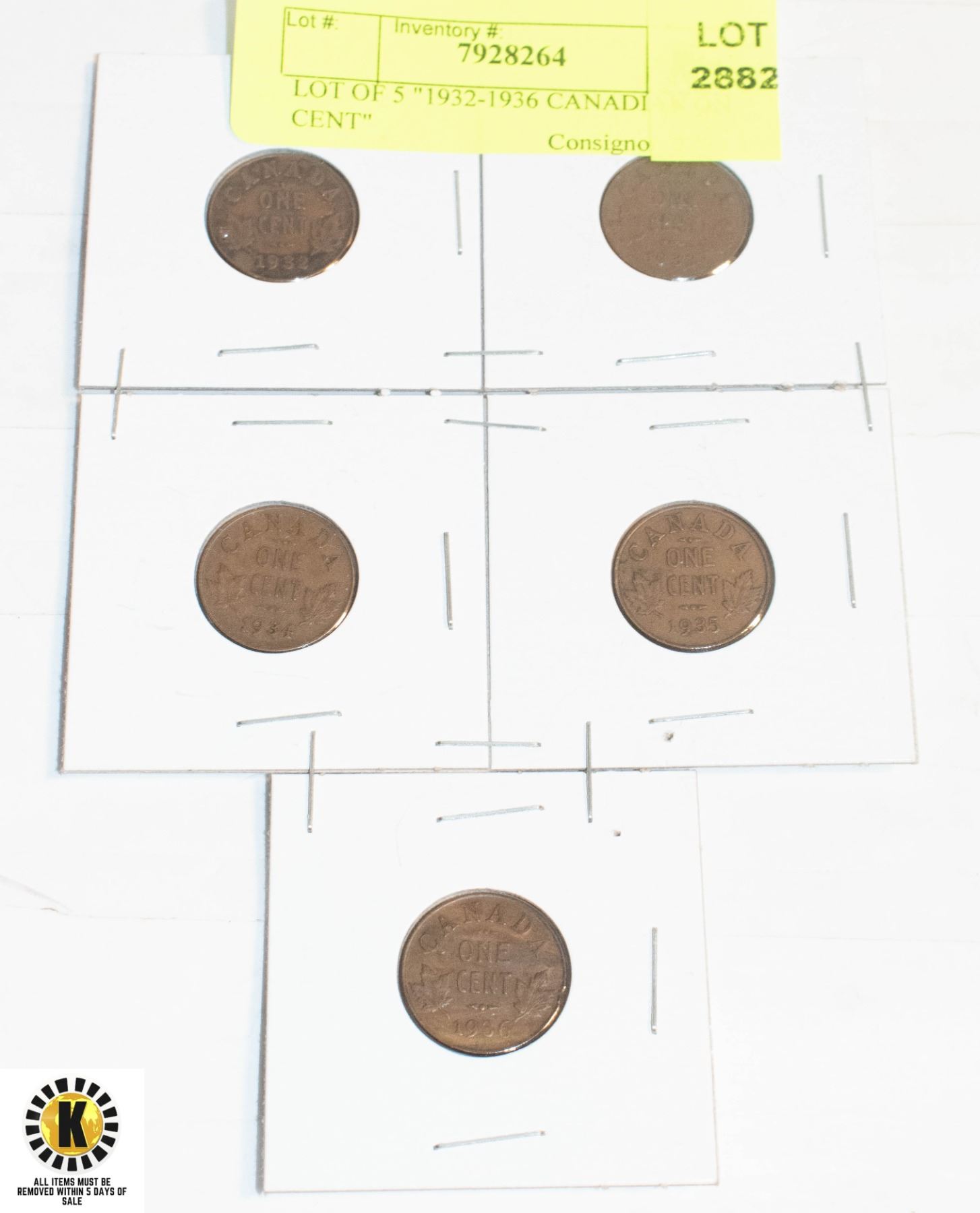 LOT OF 5 "1932-1936 CANADIAN ONE CENT"