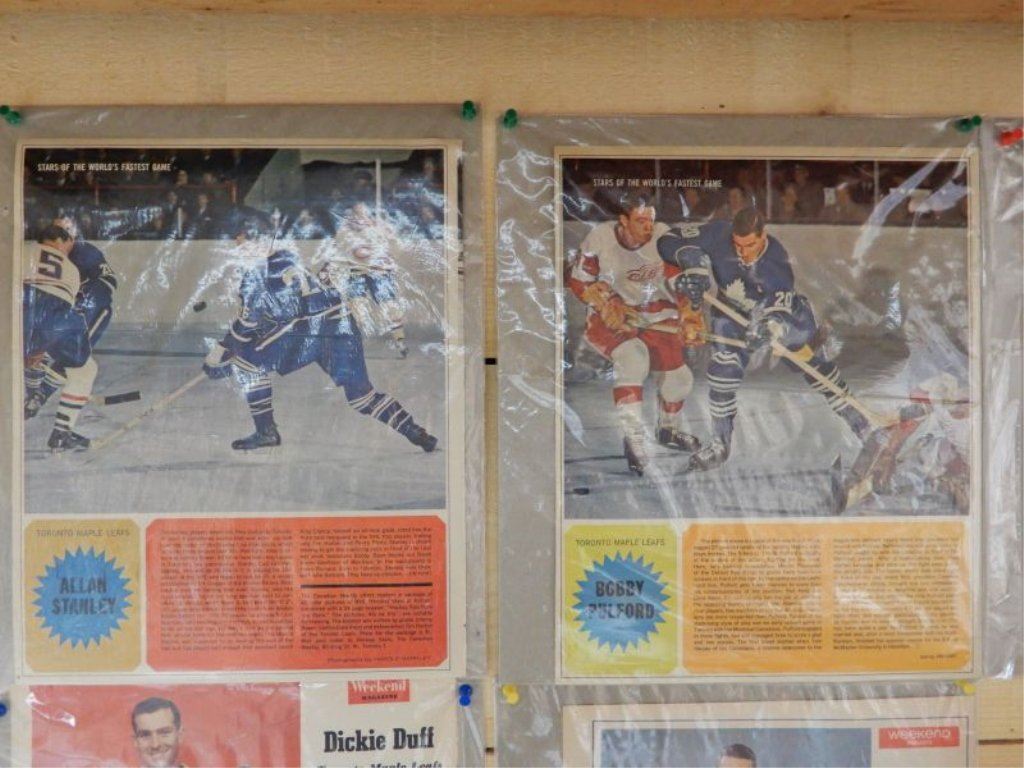 LOT OF 5 1950-1960 MAPLE LEAF NEWSPAPER CLIPPINGS 2 ALLEN STANLEY - GEORGE ARMSTRONG - BOB PULFORD - DICKIE DUFF LOCATION: UPPER BACKROOM