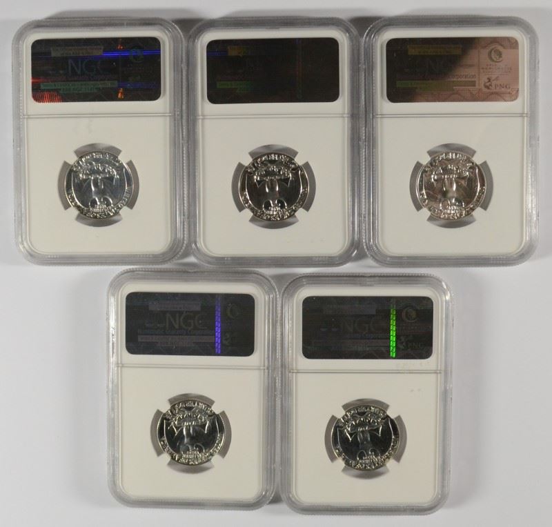 LOT OF ( 5 ) 1963 WASHINGTON QUARTERS, ( 4 ) NGC PROOF-67 & ( 1 ) NGC PROOF-66