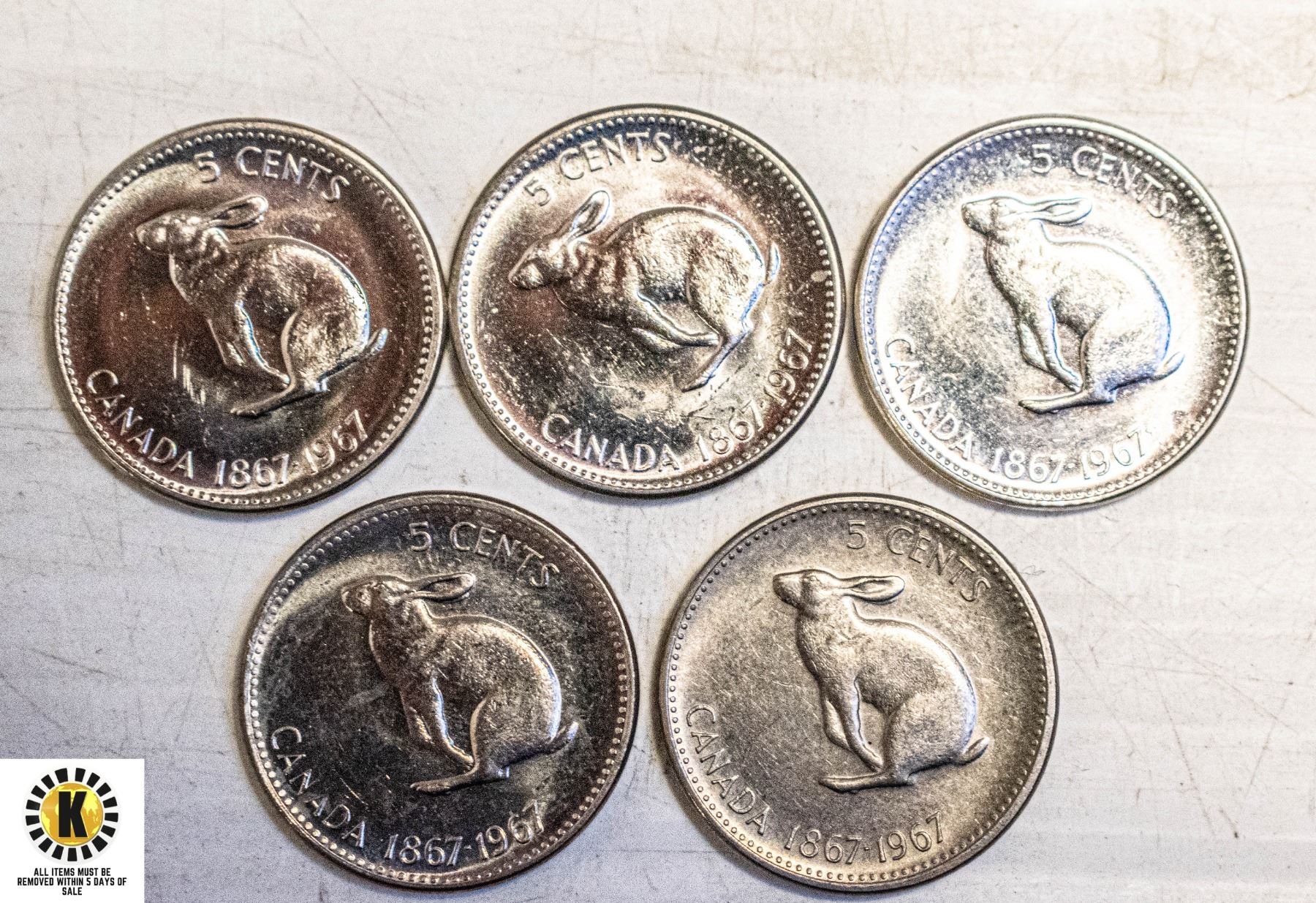 LOT OF 5 1967 CANDIAN RABBIT NICKLES