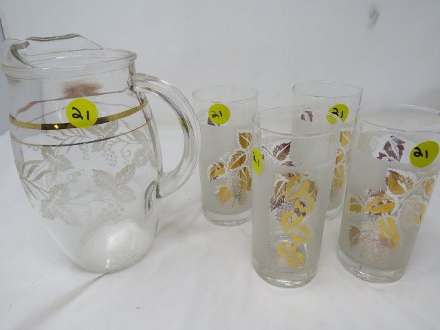LOT OF 5 (4 MATCHING GLASSES) & JUICE PITCHER