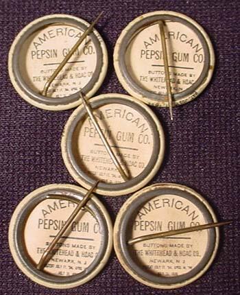 LOT OF 5 ANTIQUE CELLULOID SOLDIERS PINBACK BUTTONS - PEPSIN GUM CO.