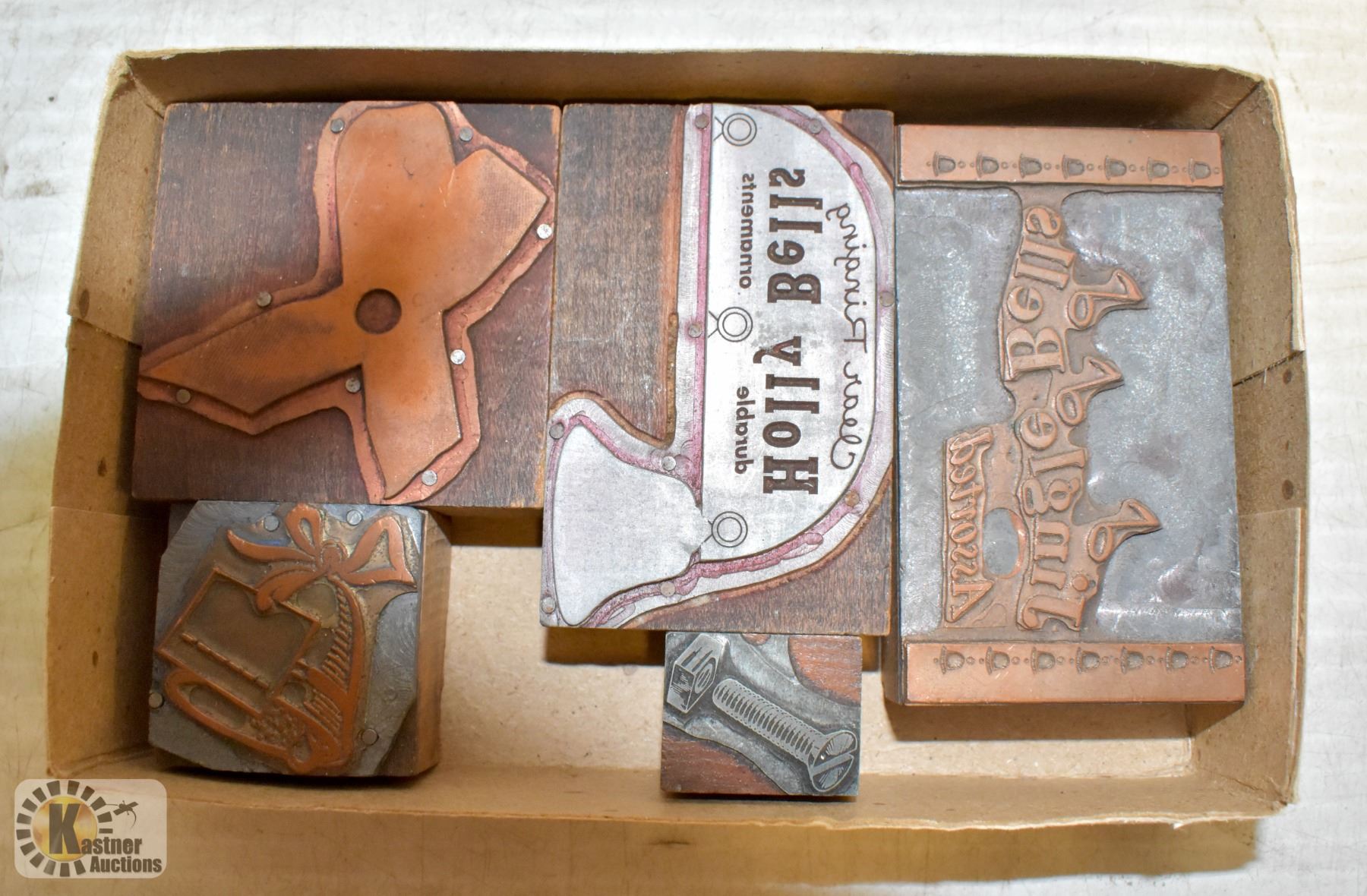 LOT OF 5 ANTIQUE WOOD ADVERTISING PRINT BLOCKS