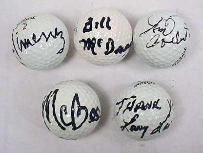 LOT OF 5 AUTOGRAPHED GOLF BALLS - Joe Jiminez, Bill McDonough, Larry Laoretti, Jim Colbert and Rives McBee