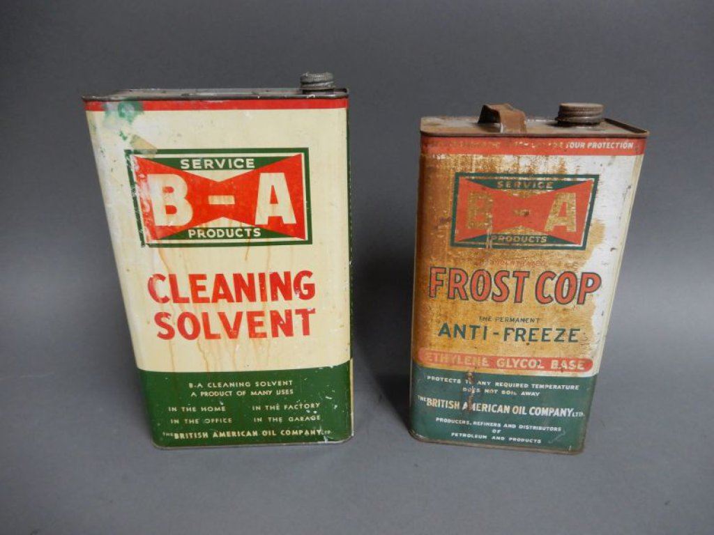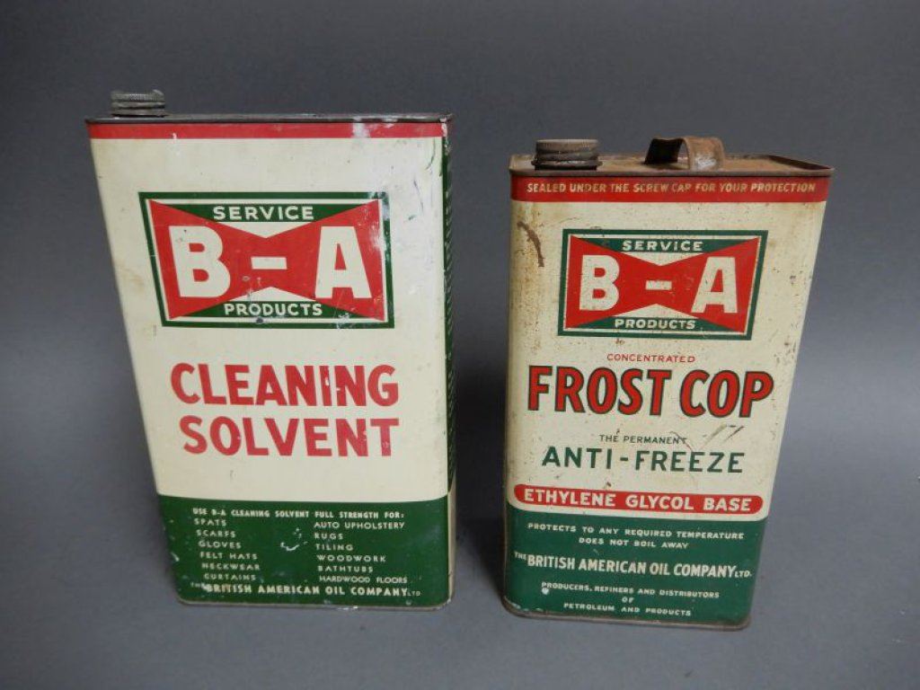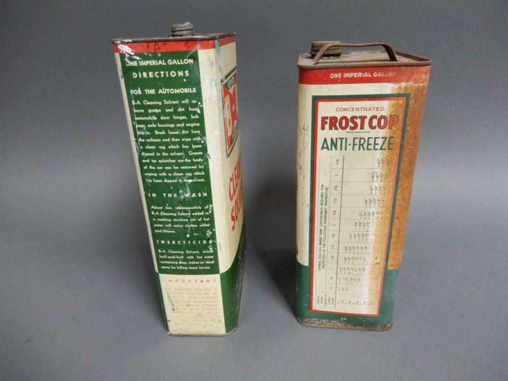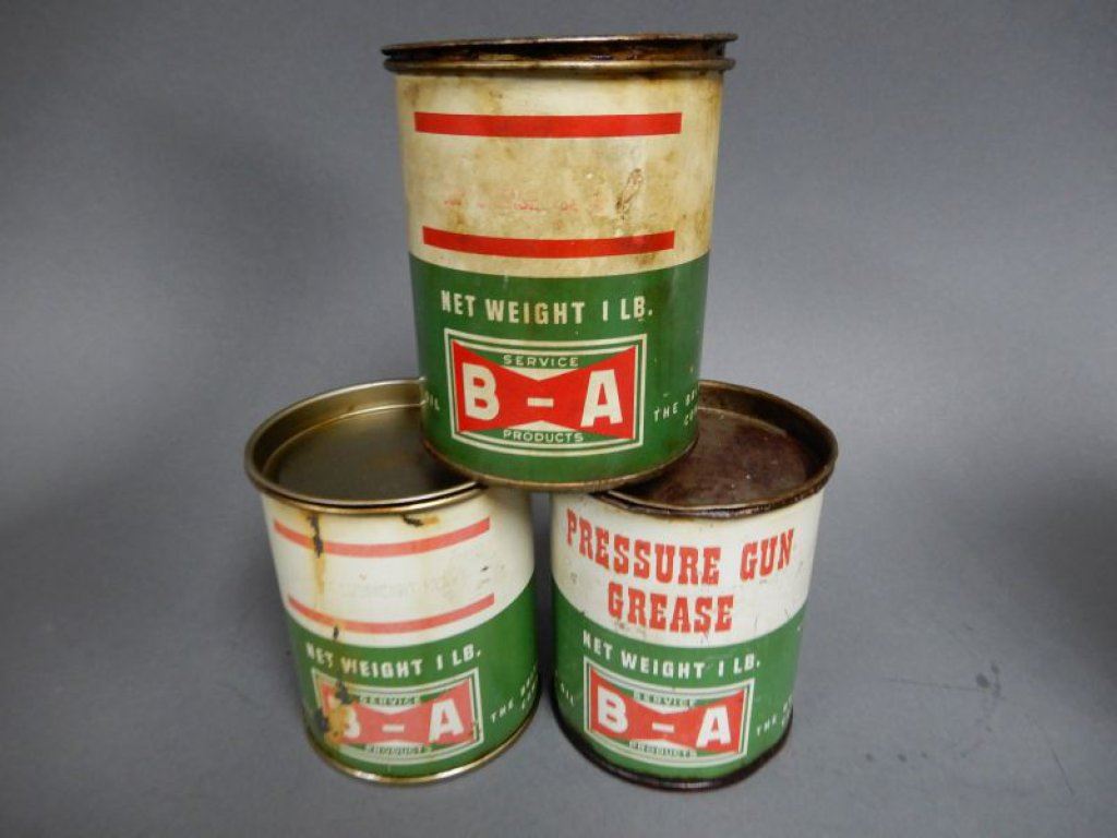 LOT OF 5 B-A BOWTIE CANS 3 1LB GREASE CANS WITH SOME CONTENT - CLEANING SOLVENT IMP GALLON CAN - FROST COP IMP GALLON CAN - SOME WEAR ON ALL LOCATION: LOWER BACKROOM