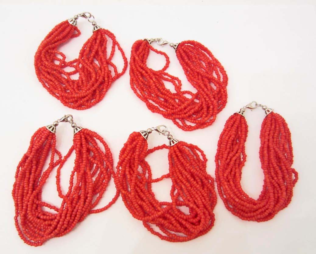 LOT OF 5 BEAUTIFUL CORAL COLOR BEAD BRACELETS