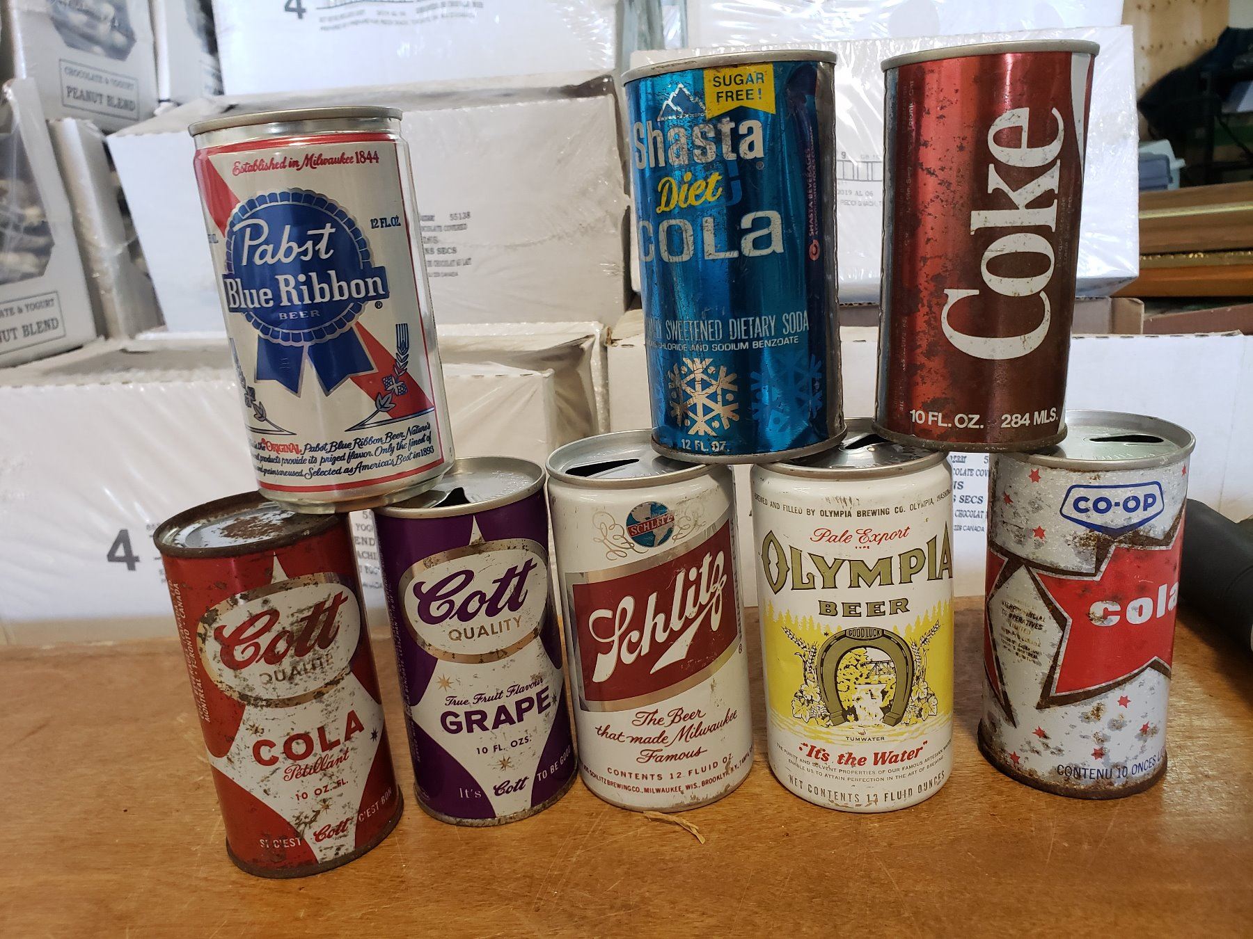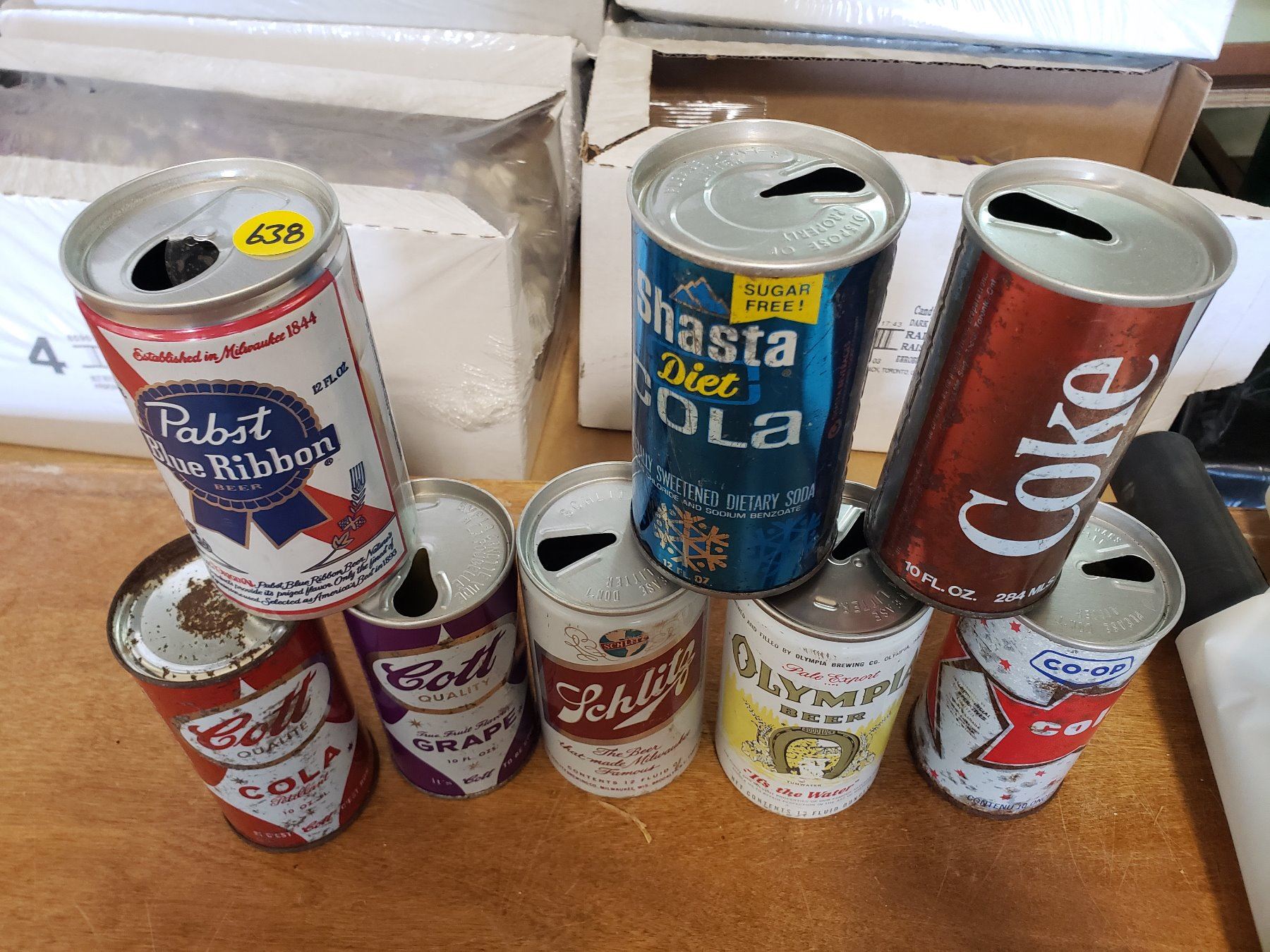 LOT OF 5 BEER AND SODA CANS (VINTAGE)