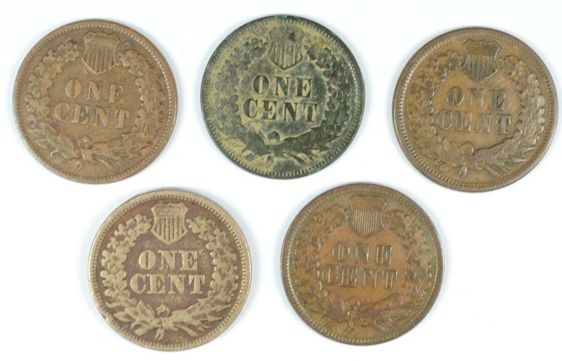 LOT OF (5) BETTER DATE INDIAN HEAD CENTS LOWER GRADES 1863, 1869, 1871, 1882,