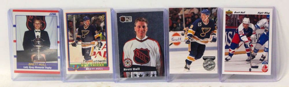 LOT OF 5 BRETT HULL HOCKEY CARDS IN PLASTIC CASES
