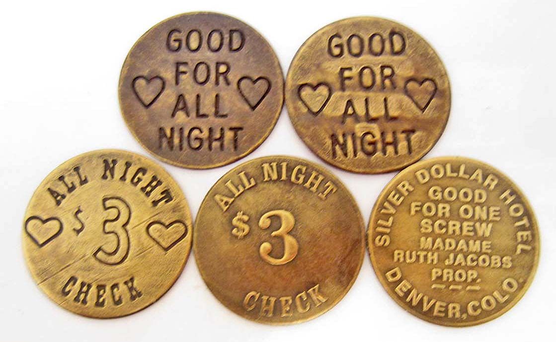 LOT OF 5 CAT HOUSE BROTHEL TOKENS