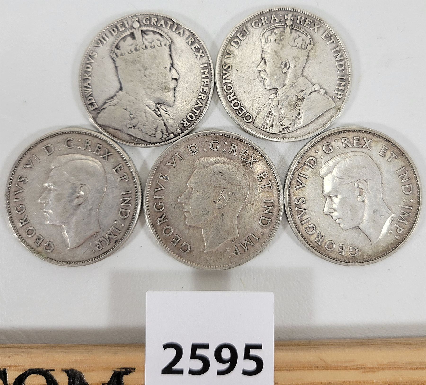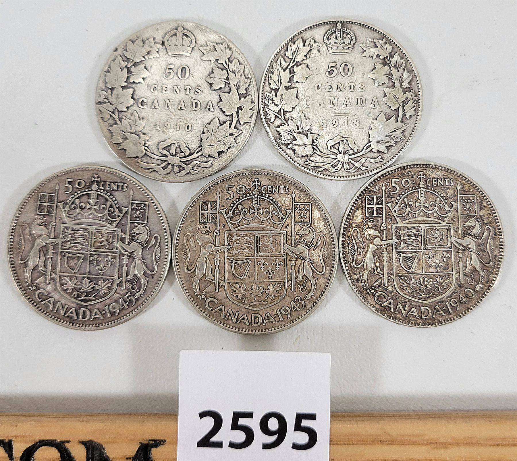 LOT OF 5 - CDN SILVER 50 CENT PIECES - 1910, '18, '40, '43, '45