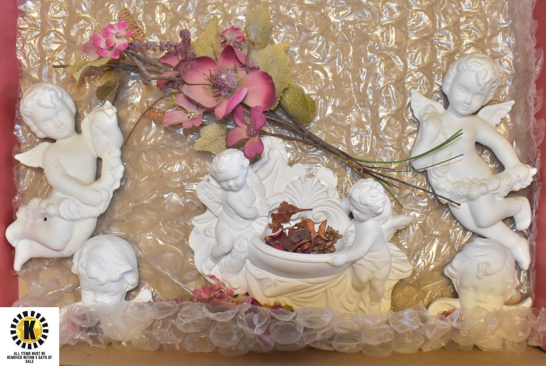 LOT OF 5 CHERUBS, VARIOUS SIZES WITH HANGERS