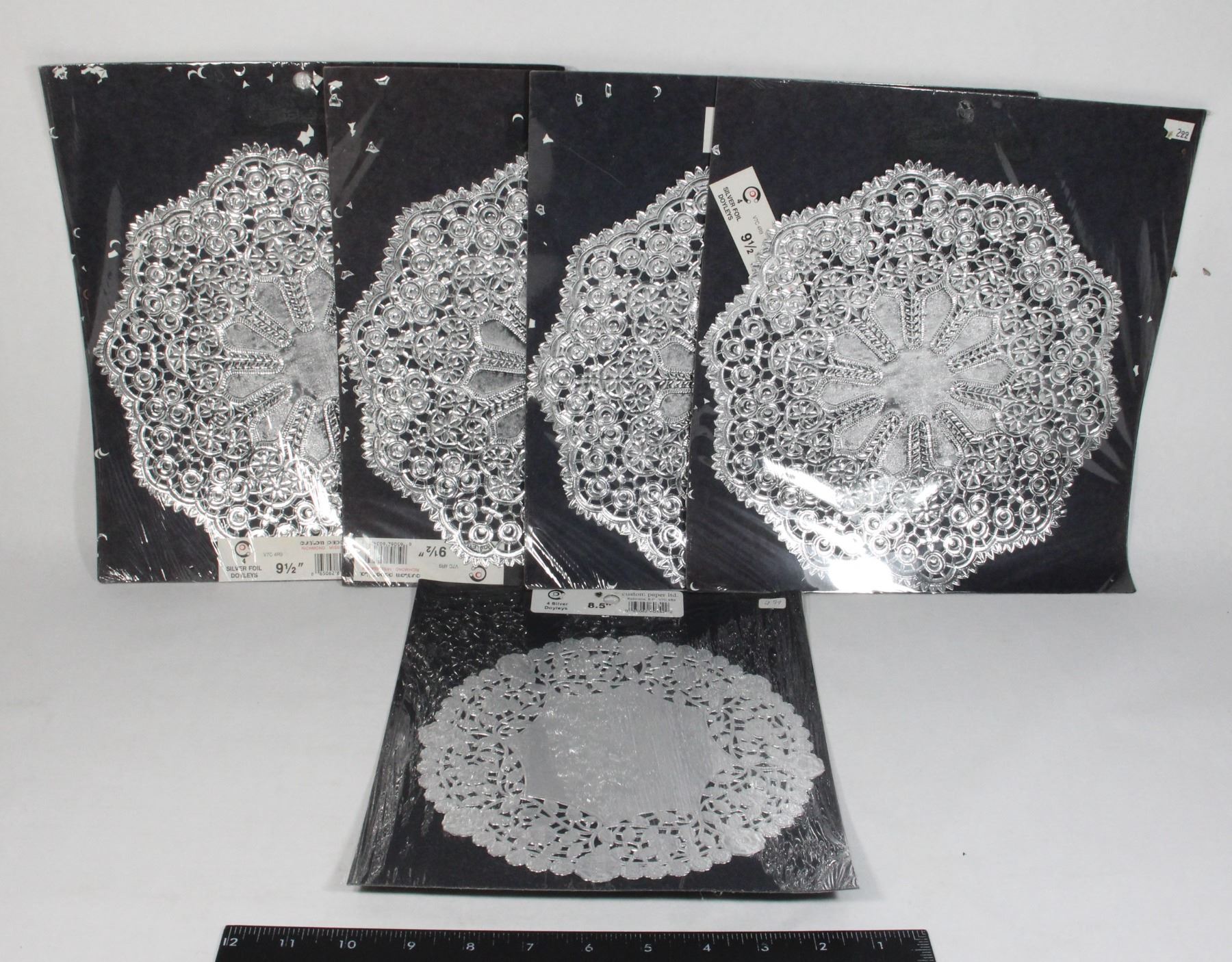 LOT OF 5 CHRISTMAS DOILIES SILVER IN COLOUR