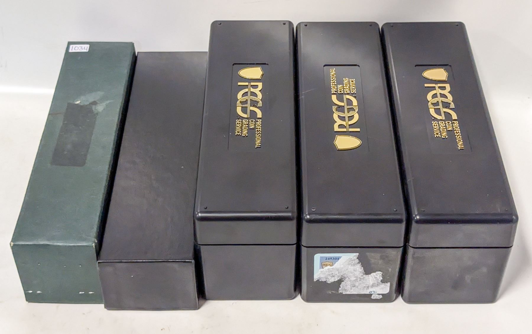 LOT OF 5 COIN STORAGE BOXES FOR SLAB AND 2X2