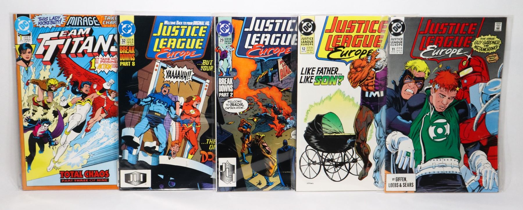 JUSTICE LEAGUE EUROPE #11, 12, 29, 32 TEAM TITANS #1***ITEM(S) LOCATED IN LETHBRIDGE ALBERTA. ALL ITEMS IN THIS AUCTION ARE ELIGIBLE FOR OUR FREE TRANSPORT TO EDMONTON OFFICE SERVICE. WORLDWIDE CANADA POST SHIPPING IS AVAILABLE