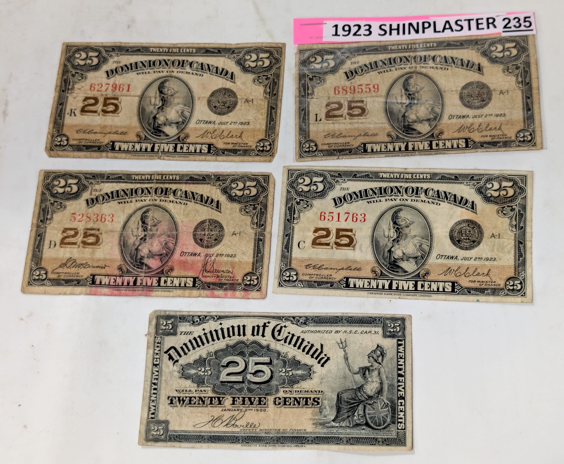LOT OF 5 DOMINION OF CANADA SHINPLASTERS