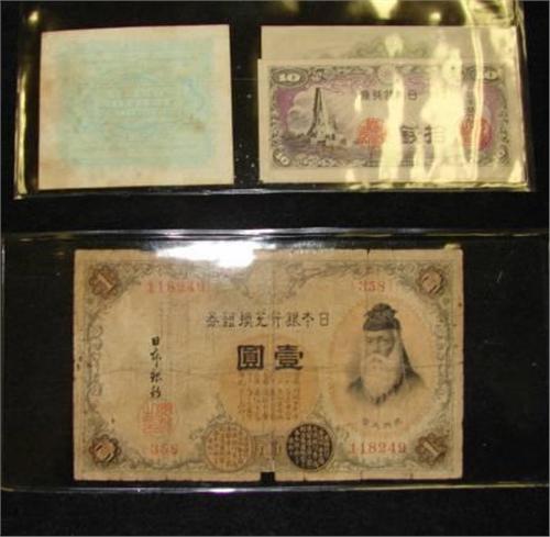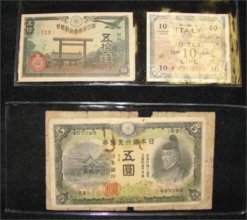 LOT OF 5 FOREIGN CURRENCY NOTES. Consists of one 1943-A Italian 10 Lire note and four Asian currency notes.