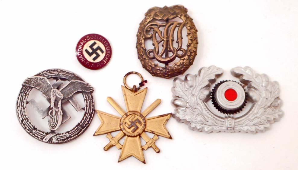 LOT OF 5 GERMAN NAZI PINS AND BADGES