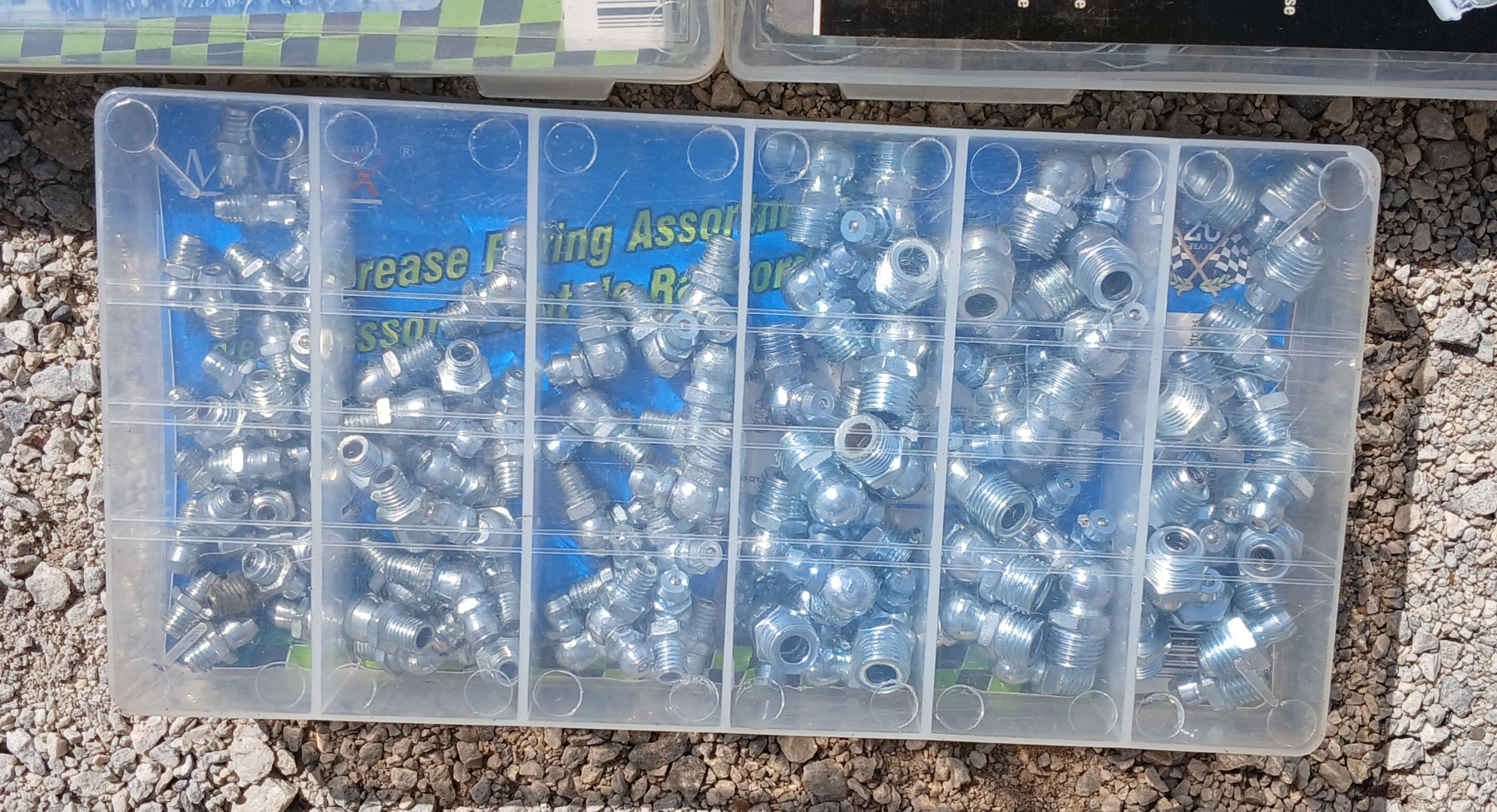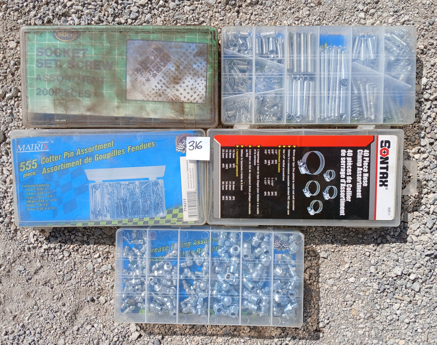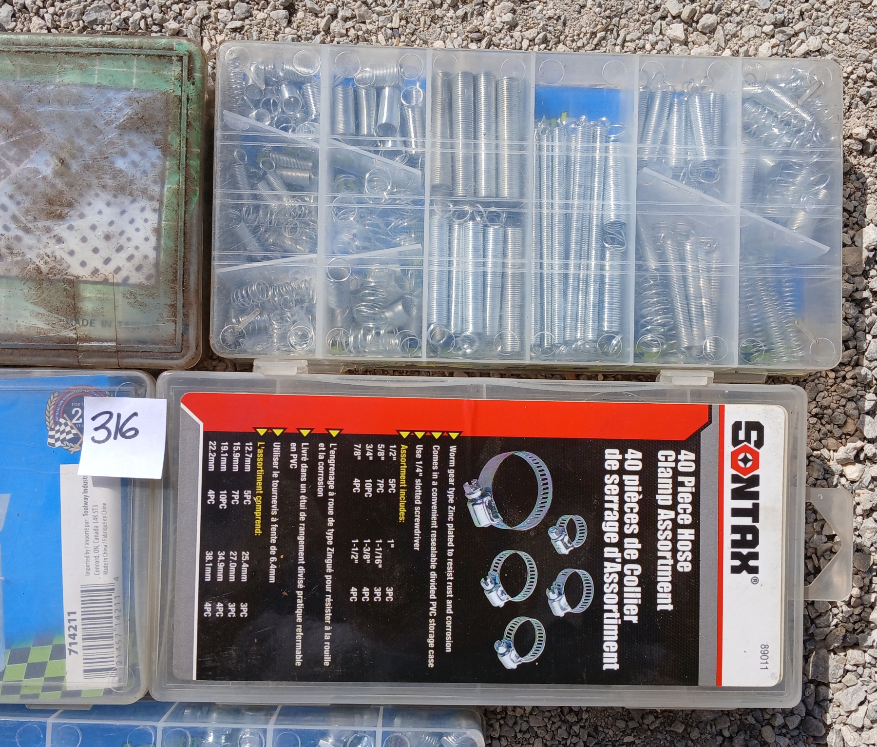 LOT OF 5 - HARDWARE SETS - INCL HOSE CLAMPS, SPRINGS, COTTER PINS, ETC