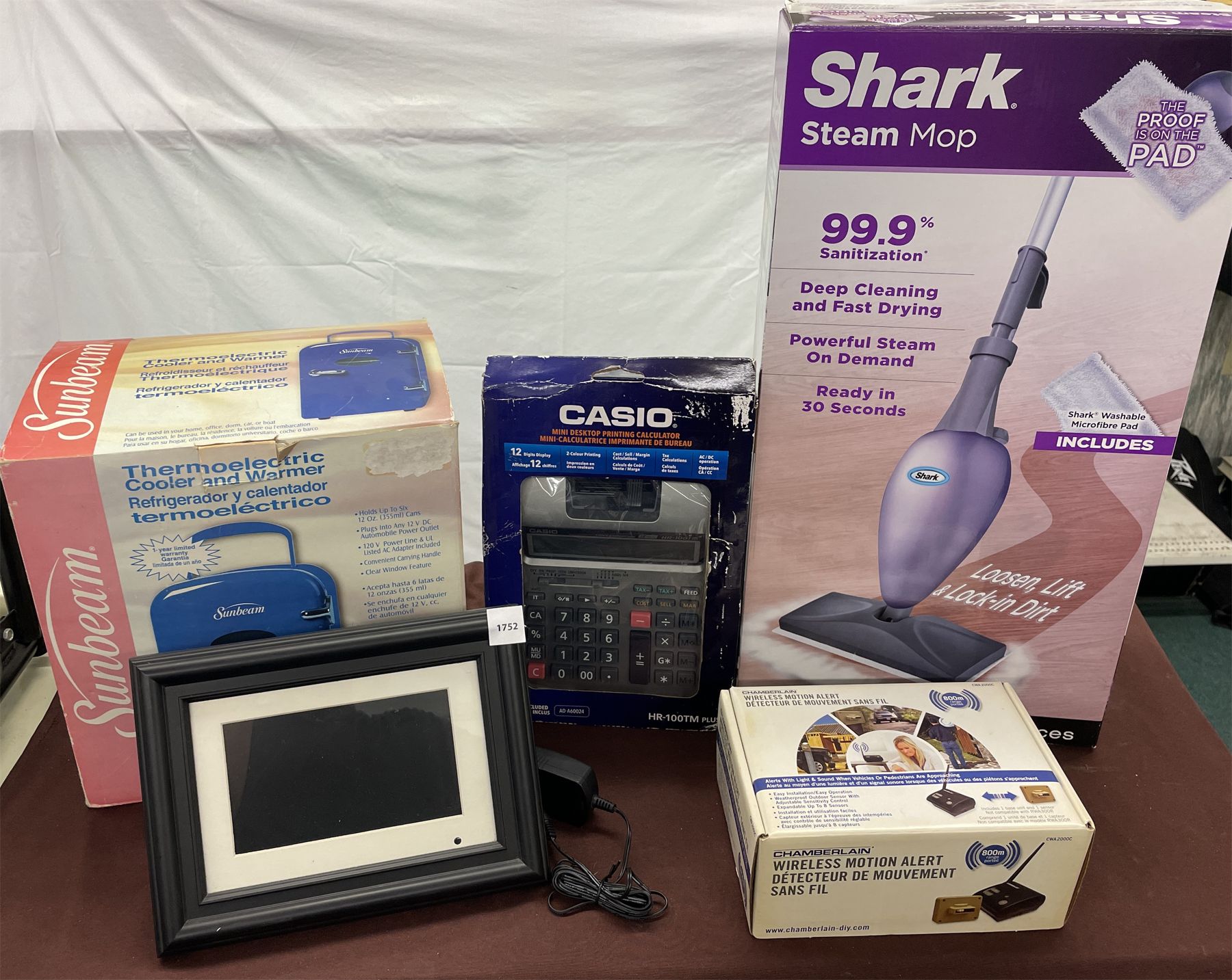 LOT OF 5 - HOUSEHOLD - DIG PIC, SHARK MOP, CALCULATOR, COOLER/WARMER