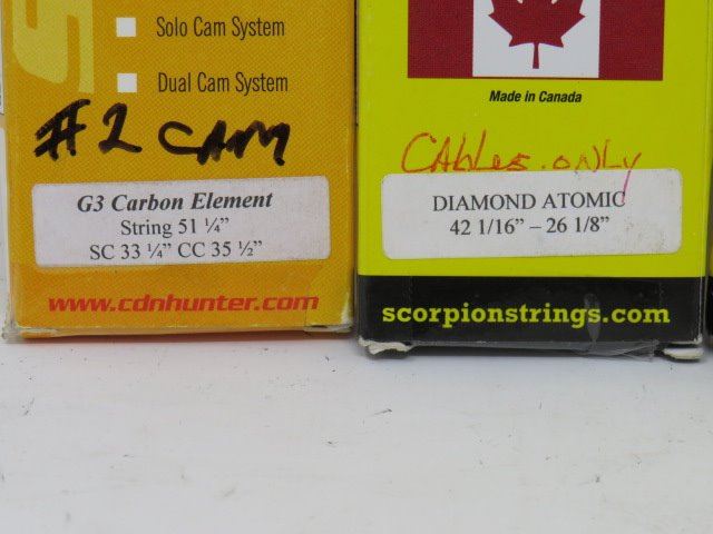 LOT OF 5 HUNTING ACCESSORIES (SCORPION STRINGS) *42 1/16" TO 51¾"* (1 PKG CABLES ONLY)