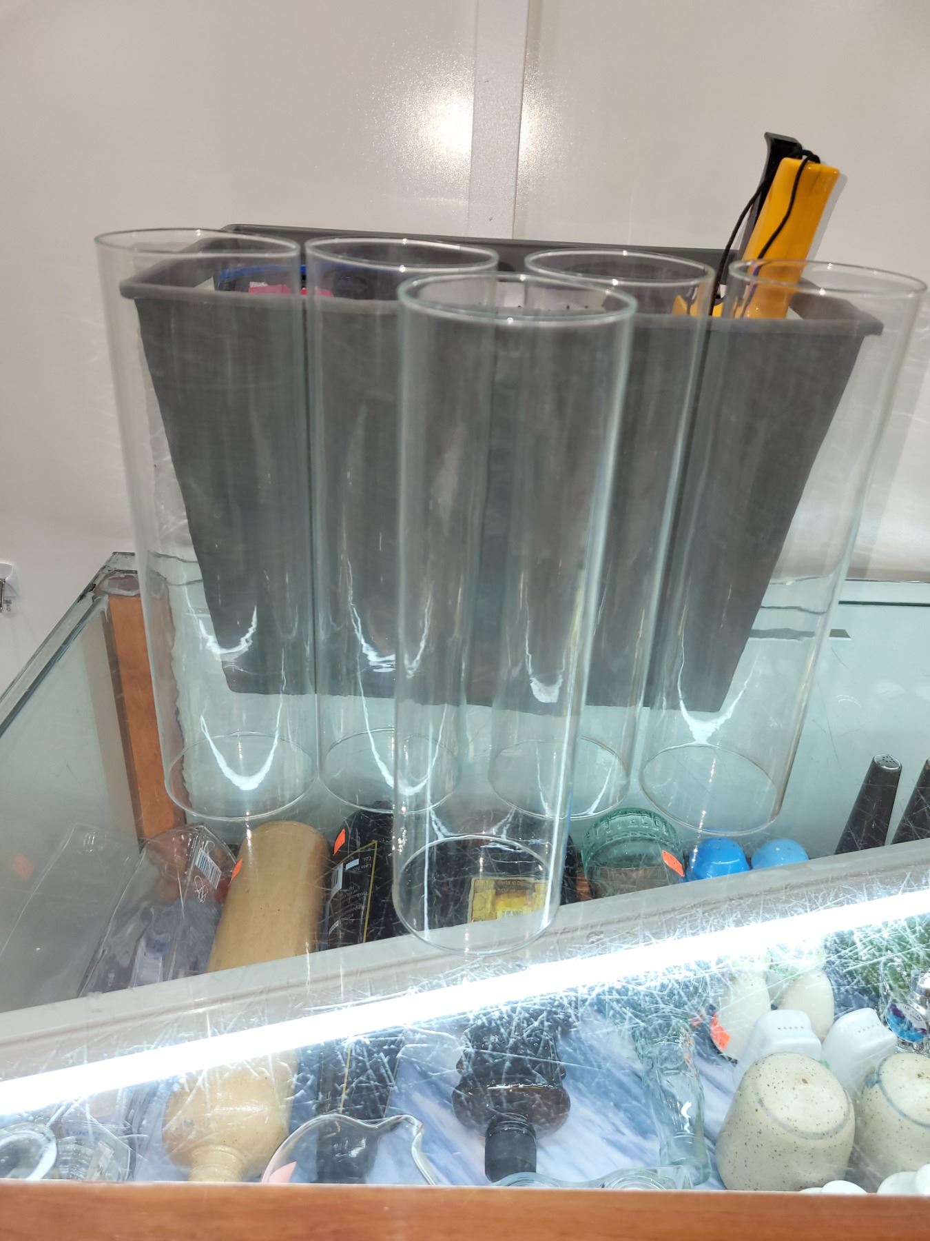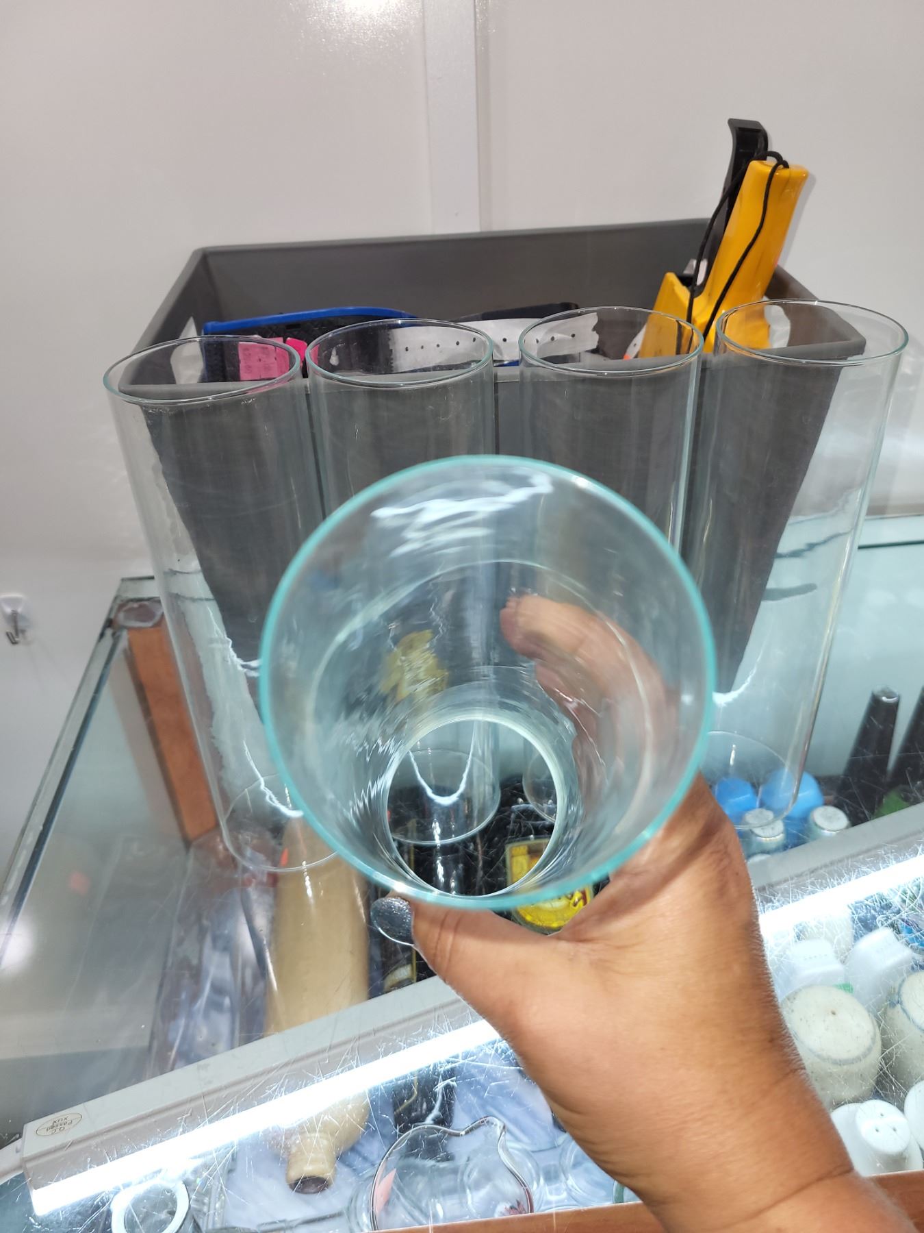 LOT OF 5 HURRIDAN LAMP CHIMNEYS. MEASURES 3" WIDE, 10" TALL