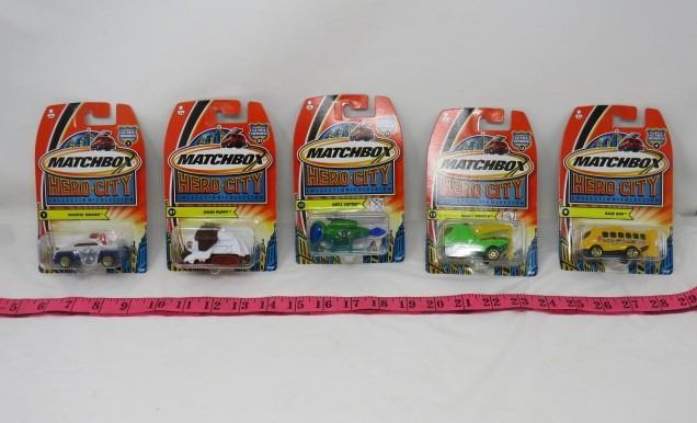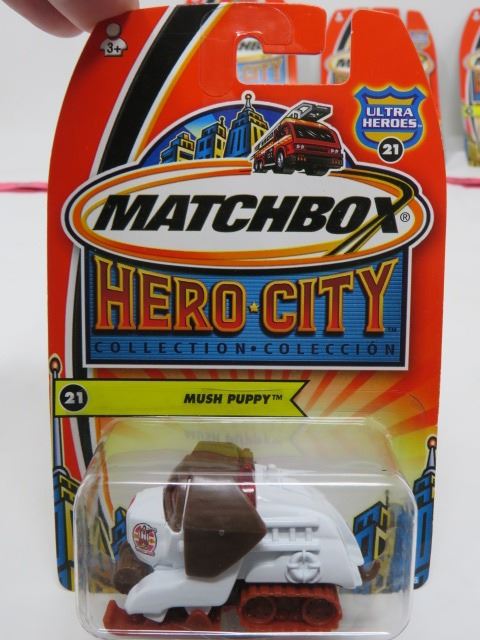 LOT OF 5 MATCHBOX CARS (HERO CITY) *CRASH HOPPER, BASS BUS, MUSH PUPPY, BUZZ COPTER & WHISTLE WAGON*
