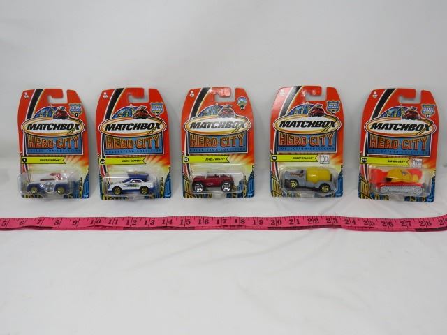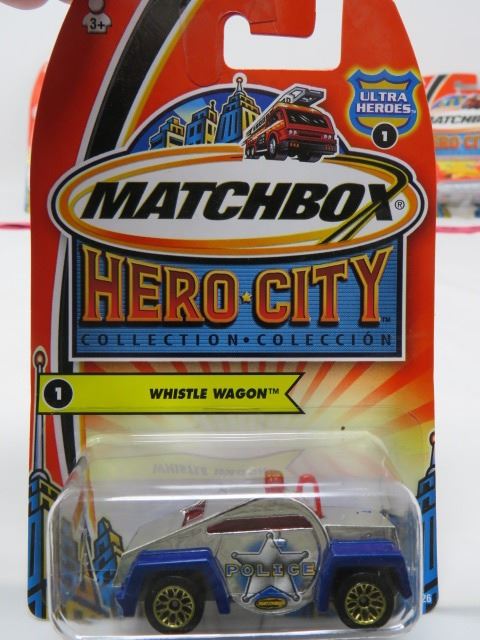 LOT OF 5 MATCHBOX CARS (HERO CITY) *RIG DIGGER, MIXOPOTAMUS, JEEP WILLYS, CRIME CAPPER & WHISTLE WAG