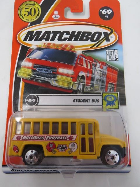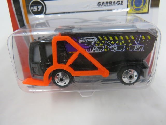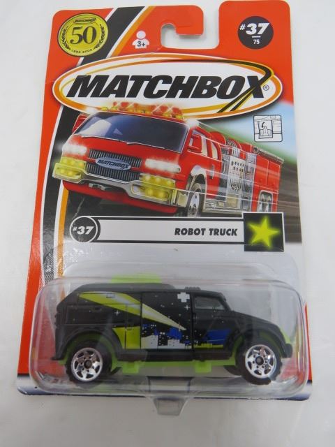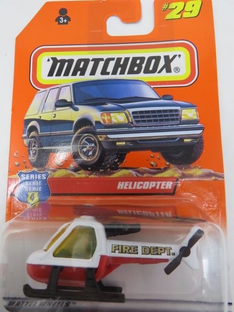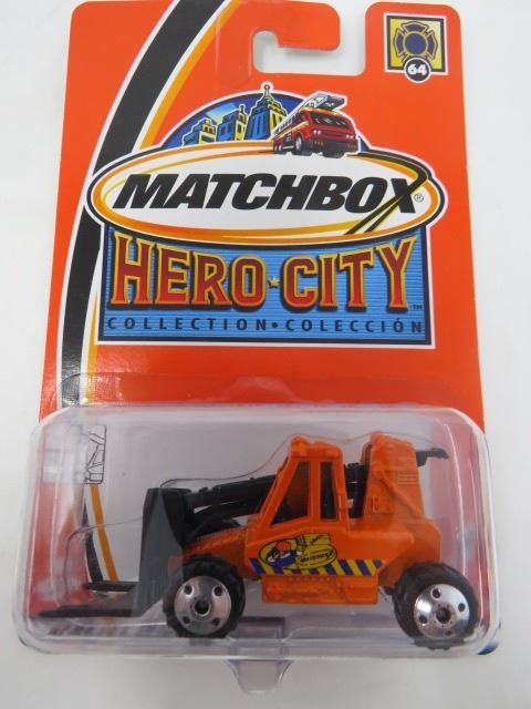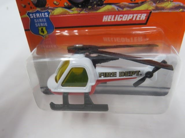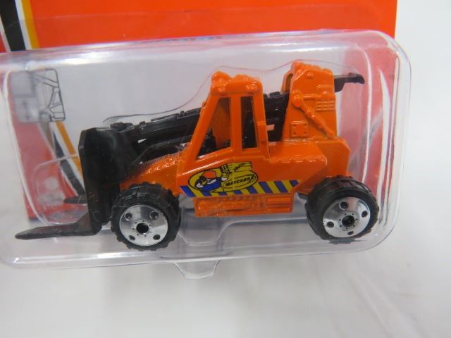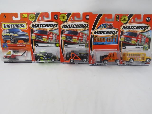 LOT OF 5 MATCHBOX VEHICLES (HELICOPTER, GARBAGE, STUDENT BUS, ROBOT TRUCK, FORK LIFT)