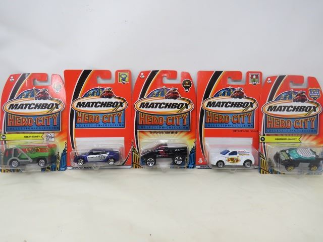LOT OF 5 MATCHBOX VEHICLES (SQUAWKIE TALKIE, TRASH KING, PONTIAC PIRAHNA, DODGE RAM SRT-10, CHRYSLER PANEL CRUISER)