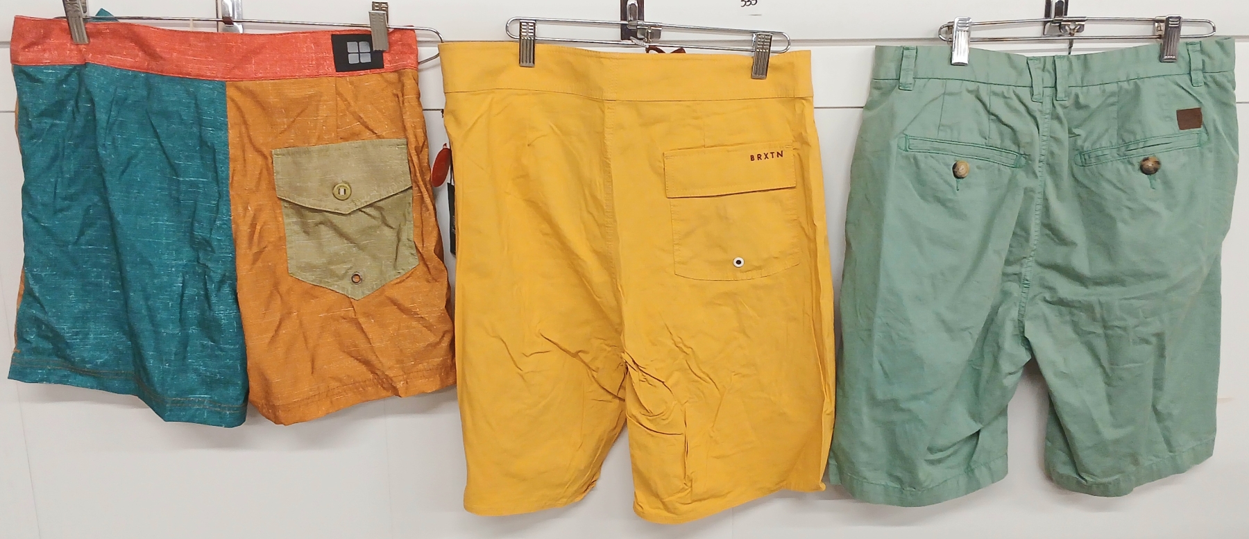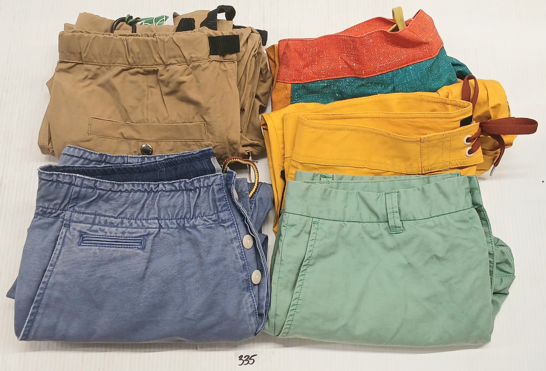 LOT OF 5 - MEN'S SWIM, LOUNGE SHORTS & PANTS - MFG BRIXTON, DEUS EX MACHINA, PENFIELD, ETC
