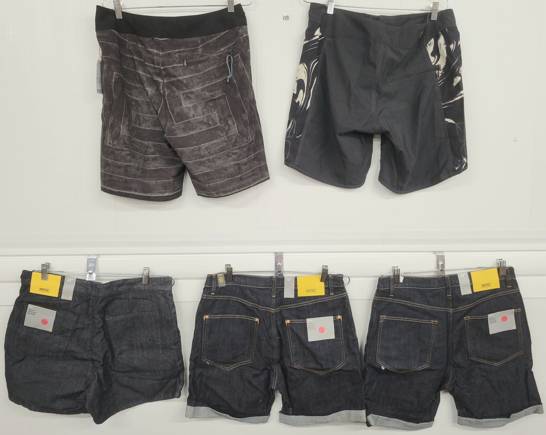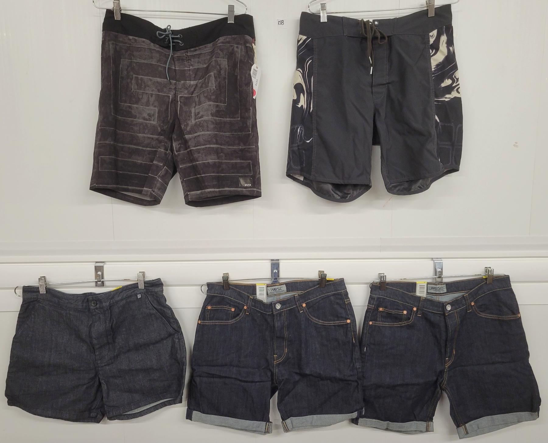 LOT OF 5 - MEN'S VSTR, WESC & INSIGHT SWIM & DARK WASH DENIM SHORTS