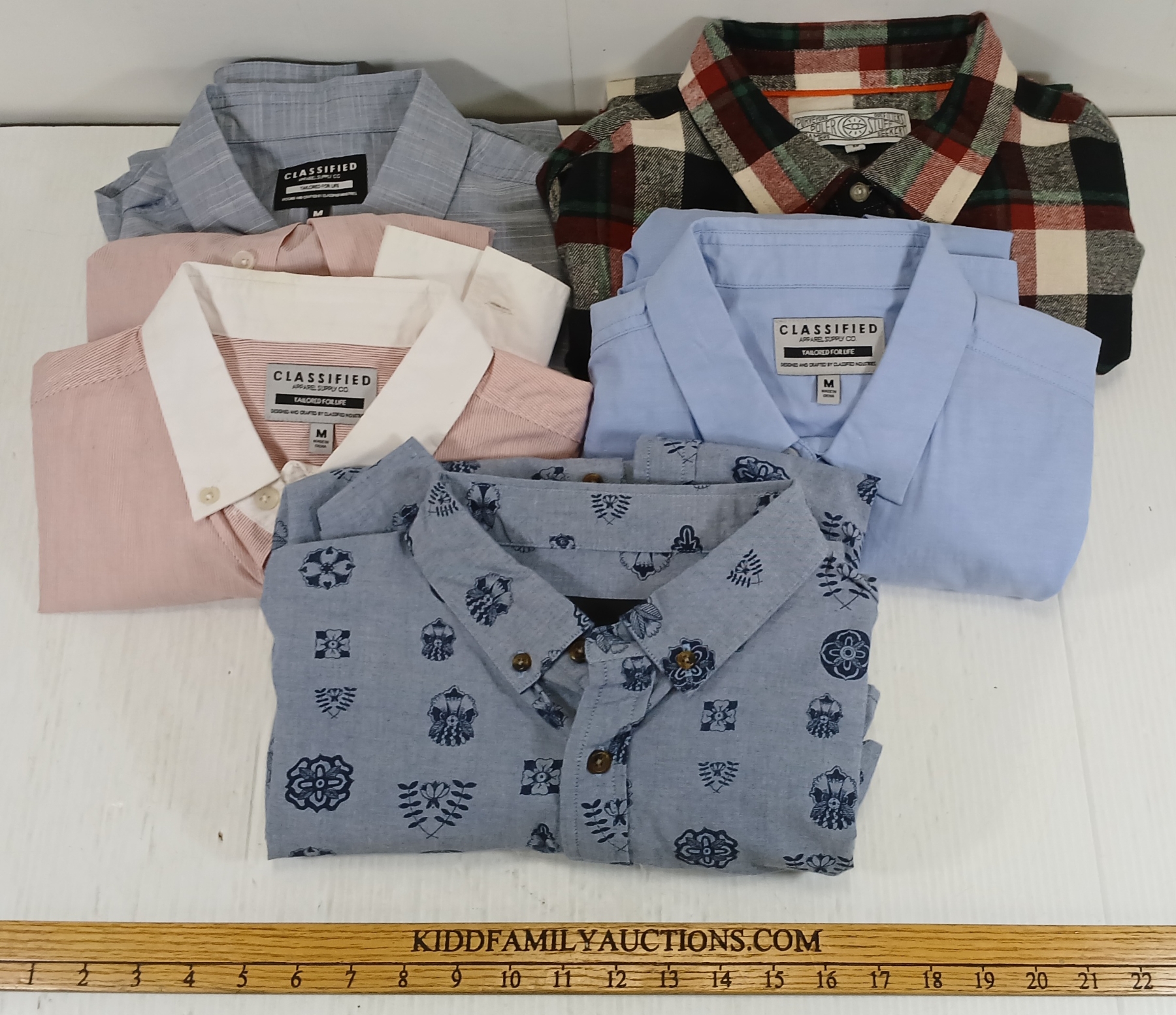 LOT OF 5 - MISC MEN'S MEDIUM DRESS SHIRTS - MFG CLASSIFIED, LIFETIME, ETC