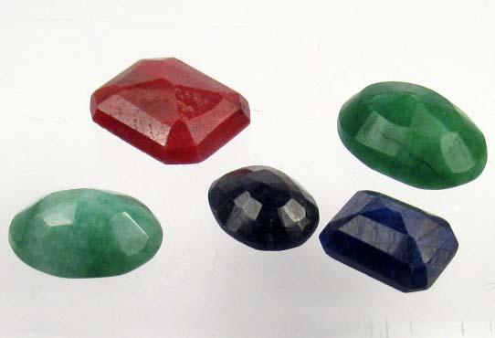 LOT OF 5 MIXED GEMSTONES - RUBY, EMERALD, SAPPHIRE - 57.8 CT.