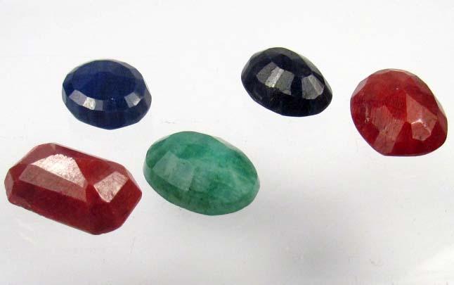 LOT OF 5 MIXED GEMSTONES - RUBY, EMERALD, SAPPHIRE - 82.7 CT.